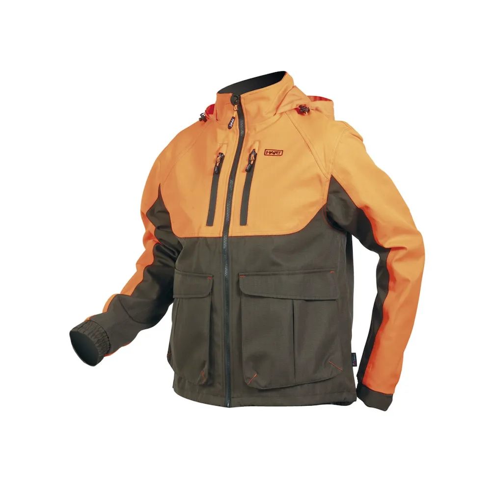 ARAN ECO-J vodootporna jakna za lov otporna na paranje. Izdržljiva rip-stop 600D konstrukcija od tkanine. Funkcionalni džepovi: 2 velika prednja džepa za teret, 2 vodootporna džepa na prsima s patentnim zatvaračem, jedan s rupom za radio/GPS antenu i priključkom za medije za povezivanje slušalica. Torbica s patentnim zatvaračem na stražnjoj strani. Kapuljača sklopiva ispod ovratnika. Džep s patentnim zatvaračem unutar prsa. Visoka vodootpornost (10000 mm) i prozračnost (10000 gr/m2).