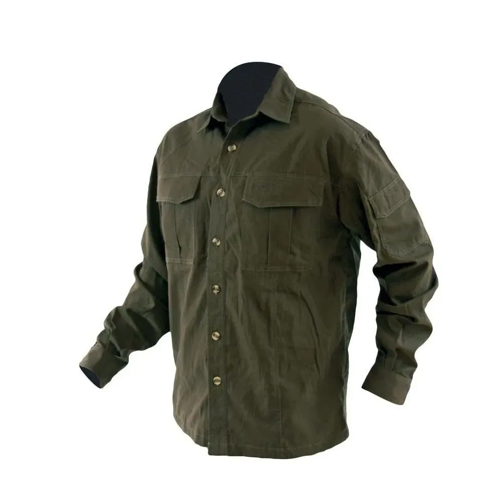 Košulja sa više džepova, dugih rukava. Kompaktan pamučni materijal, idealan za cjelogodišnju upotrebu. Konstrukcija tkanine otporna na kidanje. Materijal: 100% pamuk.