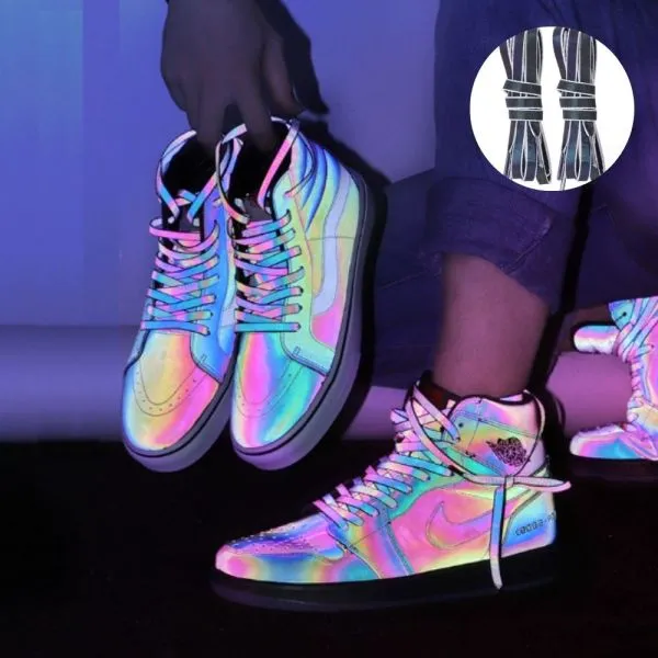 Ove vezice za cipele obložene su holografskim materijalom i imat će živopisnu boju pod svjetiljkom, čime će se vaše omiljene cipele istaknuti i noću primijetiti.