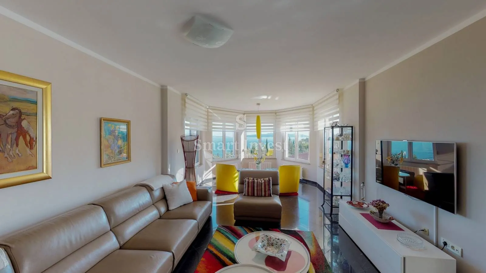 IČIĆI, 200 m od mora, iznajmljuje se prekrasno uređen stan! Stan površine 120 m2, smješten u prizemlju kuće, sastoji se od tri dvokrevetne sobe, dvije kupaonice, dnevnog boravka, hodnika, kuhinje, ostave, blagovaonice i hodnika. Dvije dvokrevetne sobe nalaze se u stražnjem dijelu stana i koriste zajedničku veliku kupaonicu. Treća soba se nalazi u prednjem dijelu stana sa zasebnom manjom kupaonicom i pogledom na more kao i zasebnom terasom na dva nivoa s garniturom za odmor i zaštitom od sunca. Veća kupaonica ima tuš kabinu s hidromasažnim stupom, WC školjku, bide, umivaonik i sušilo za kosu. Kuhinja je modernog dizajna i kompletno opremljena. U nastavku dnevnog boravka nalazi se ostakljeni dio namijenjen odmoru i uživanju uz čaj ili kavu uz prekrasan pogled na cijeli Kvarner, plažu i padine Učke. U sklopu dnevne sobe nalazi se kamin i veliki LCD TV. Kompletan apartman je potpuno novo opremljen s vrhunskim talijanskim dizajnerskim namještajem i opremom. Iz blagovaonice se izlazi na zaštićenu terasu (natkrivena konstrukcija s tendom) gdje je smješten okrugli stol sa 6 stolica za ugodan doručak ili večernji koktel. U ulaznom hodniku se nalazi cipelar i moderna vješalica. Apartman ima klima uređaj i centralno grijanje. Stan ima osigurano parkirno mjesto, a nalazi se na lijepoj i mirnoj lokaciji nedaleko mora, plaže, marine, dućana... Slobodno za najam od 01.10.2025. - 01.06.2026. Za više informacija nazovite +385/99/320-0011 ID KOD AGENCIJE: 11443 Danijela Urlić - PODRUČJE ISTRA Agent s licencom Mob: +385/(0)99/320-0011 E-mail: danijela.urlic@smart-invest.hr www.smart-invest.hr