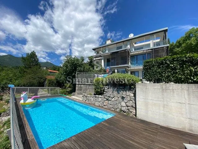 IČIĆI - POLJANE, luksuzna kuća s bazenom i pogledom na more na mirnoj lokaciji. Kuća površine cca 500 m2 smještena na zemljištu 723 m2, a sastoji se od suterena, prizemlja i 1. kata. U suterenu kuće se nalaze dvije spavaće sobe, jedna kupaonica i prostrani hodnik, u prizemlju kuće se nalazi dnevni boravak, kuhinja, blagavaonica, spavaća soba sa vlastitom kupaonicom i toalet, dok se na 1. katu kuće nalaze dvije spavaće sobe, kuaponica te master spavaća soba sa vlastitom kupaonicom. Prizemlje i 1.kat kuće imaju prostrane balkone s lounge namještajem i ležajevima s kojih se pruža otvoreni pogled na more. Grijanje je podno na dizalice topline, dok je hlađenje putem fancoilere ( svaka prostorija ima vlastiti ). Na uređenoj okućnici se nalazi bazen, sunčalište, vrt i parking za nekoliko automobila. Za više informacija i razgled nazovite +385/91-3200-040 ID KOD AGENCIJE: 14241 Denis Dizdar Agent s licencom Mob: +385/91/320-0040 E-mail: denis@smart-invest.hr www.smart-invest.hr
