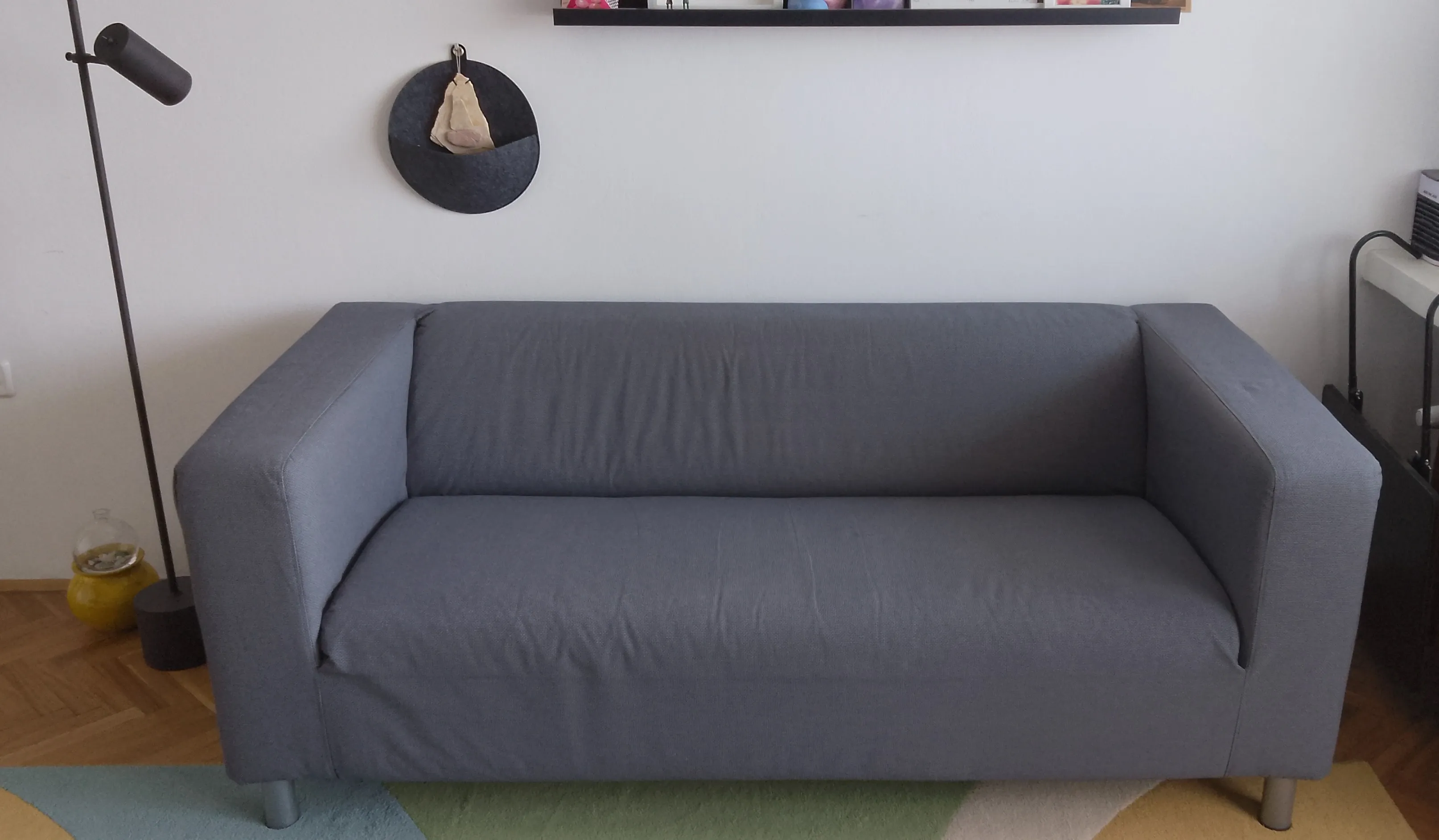 Odlično očuvan dvosjed star 2 godine. Navlaka je bez oštećenja, ali se može zamijeniti novom iz Ikea Klippan serije. Dimenzije su prikazane u galeriji fotografija.