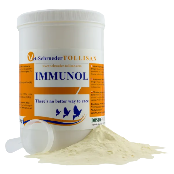 Nova smjesa Immunol sadrži vrijedne životinjske proteine iz jajeta u prahu, koji su izuzetno bogati imunoglobulini IgY. Jaje u prahu je vrijedan izvor životinjskih proteina. Ima visoku biološku vrijednost od 100% i ima idealan omjer aminokiselina. Imunoglobulini povoljno utječu na zdravlje crijevne mikroflore. Nakon primjene Immunola stvaraju se antitijela klica koje se bore protiv bolesti izbacujući ih kroz izmet. Sadrži antitijela koja se bore protiv E.coli, salmonele, circovirusa, rotavirusa, cryptosporidiuma, coccidije i clostridije.
