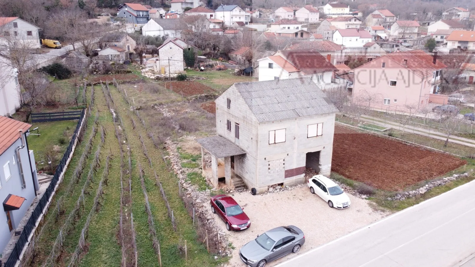 Prodaje se samostojeća kuća u mjestu Zmijavci pored grada Imotskog. Ukupna površina kuće iznosi 229 m2 bruto na tri etaže (prizemlja, kat i potkrovlje na parceli od 769 m2. Kuća je nedvršena (u niskoj roh-bau fazi). Posjeduje priključak električne energija, a sva potrebna komunalna infrastruktura nalazi se odmah uz parcelu.