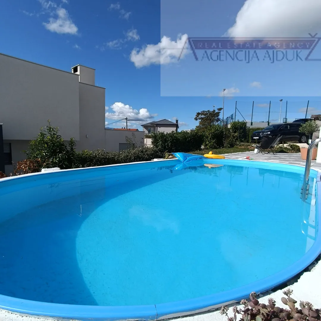 (Napomena moguća dogradnja kroz izmjenu i dopunu još 3 stambene jedinice, npr.2stana od 60m² na 1.katu i 1stan od 100m²+balkon u potkrovlju).<br>Kuća je kompletno namještena i opremljena te se sastoji od 3 spavaće sobe, dvije od 12 m² i jedna od 20 m², dva kupatila i jedan vešeraj, namještene kuhinje i dnevnog boravka od 55m². Sve sobe su južne orijentacije kao i dnevni boravak te nude prekrasan pogled na planine. Najdojmljiviji dio je terasa sa sunčalištem uz bazen kao i odvojeno mjesto za roštilj i gredicom sa začinima. Riječ je o prekrasnoj kući koja nudi mir i privatnost te je stoga idealan izbor za obiteljsku oazu, dok joj sama lokacija nudi i mnoštvo izbora za iznajmljivanje.