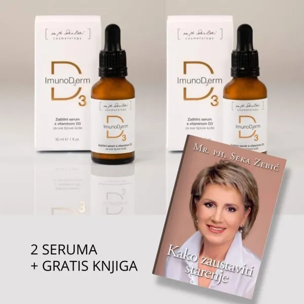 U pakiranju je povoljnije! Uz 2 komada zaštitnih ImunoD3erm seruma sa D vitaminom, darujemo gratis knjigu Kako zaustaviti starenje!