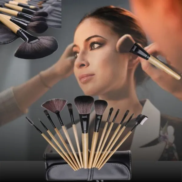 Kvalitetni set kistova za šminkanje u prijenosnoj roll up torbici. Četkice za šminkanje.