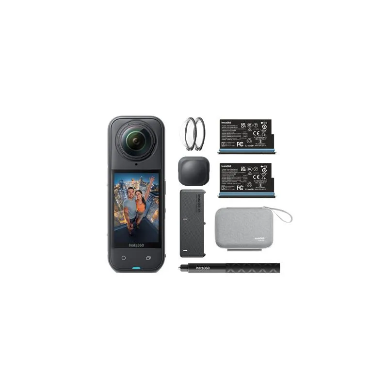 360° akcijska kamera s 8K video snimanjem; Dualni 1/1.28″ senzori + Triple AI Chip – poboljšana obrada slike i performanse u slabom osvjetljenju; Vodootporna do 15 m bez kućišta, pogodna za vodene avanture; Napredna obrada zvuka i Wind Guard – jasniji zvuk pri snimanju na otvorenom; Plug‑and‑play putem USB‑C – jednostavna veza s računalom za prijenos i uređivanje sadržaja; U paketu: Insta360 X5 kamera, Invisible Selfie Stick, Baterija (2400 mAh), 128 GB microSD kartica, Zaštitna torbica