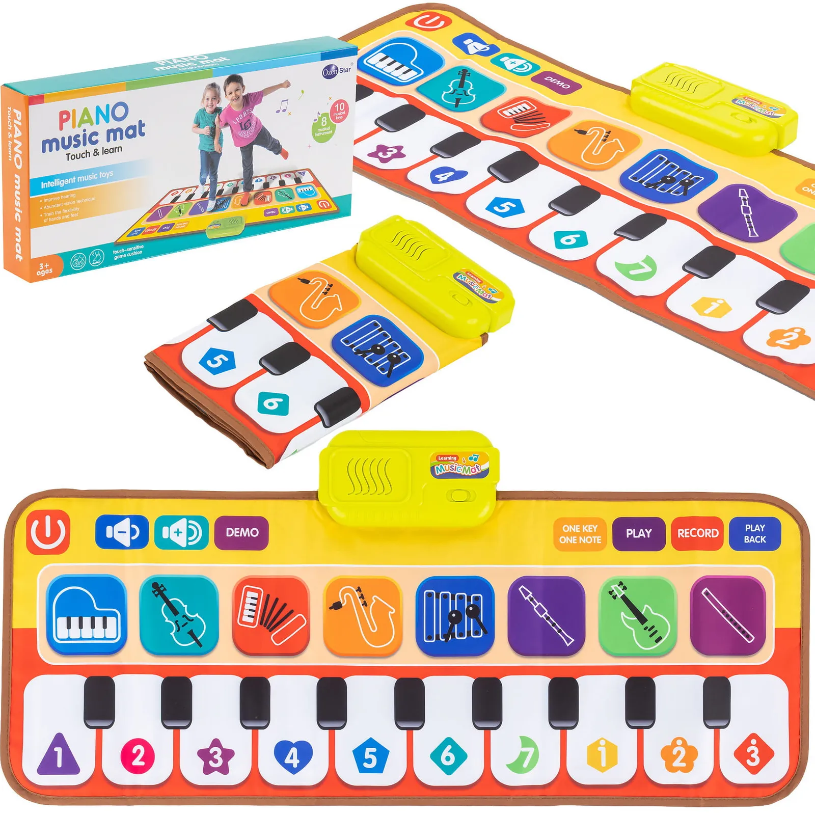 Podloga za sviranje – piano izvrstan je proizvod za malu djecu i one malo starije koja se već mogu igrati sa zvukom. Glazbena podloga je opremljena ugrađenim zvučnikom i upravljačkom pločom koja vam omogućuje uključivanje/isključivanje igračke, pojačavanje i stišavanje glazbe, snimanje vlastitih sekvenci i reprodukciju. Ova glazbena podloga odlična je za učenje zvuka.