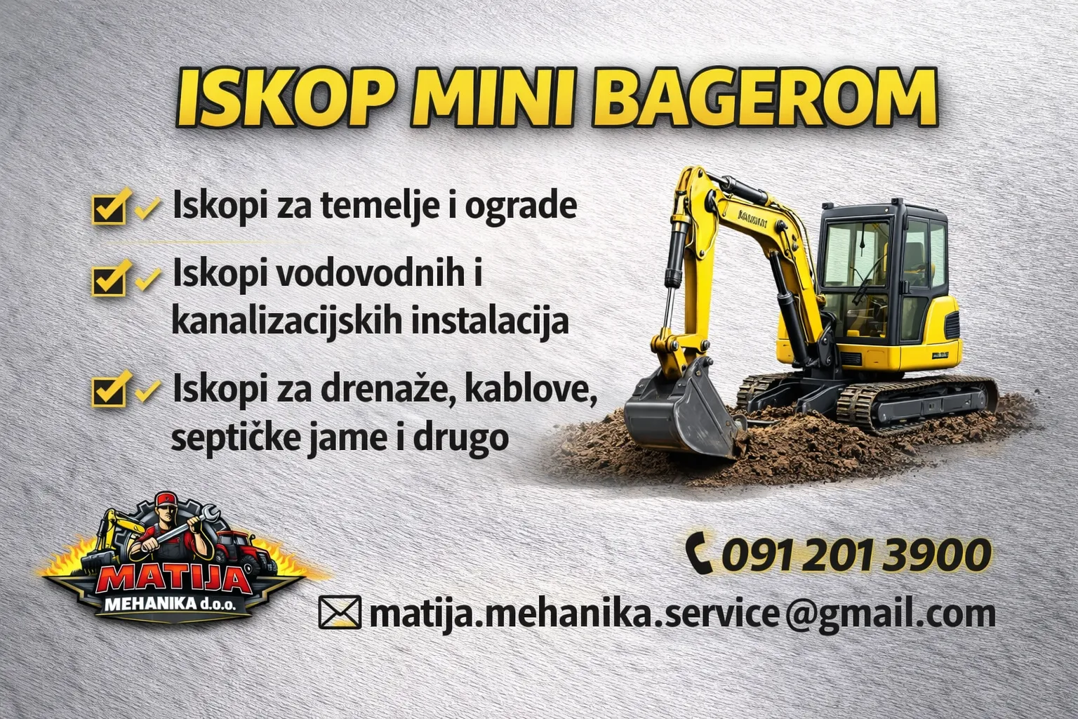 mini bager usluge, iskop mini bagerom, iskop temelja, ravnanje terena, uređenje dvorišta, priprema terena, iskop kanala, kopanje kanala, kanalizacija iskop, iskop za vodu, iskop za struju, drenaža iskop, čišćenje terena, zemljani radovi, građevinski radovi, mini bager Zagreb, iskop Zagreb, ravnanje terena Zagreb, usluge bagerom, mali bager, iskop uski prolazi, odvoz zemlje, odvoz šute