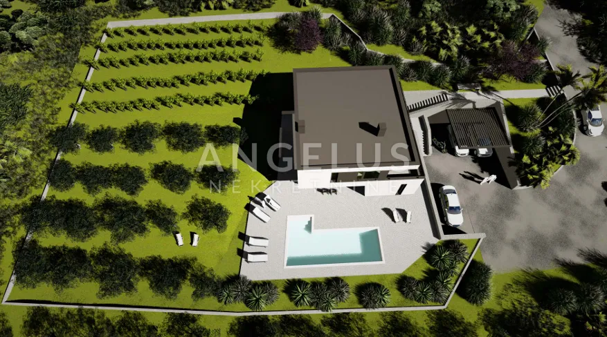 Angelus nekretnine Vam nude ovo atraktivno zemljište s pravomoćnom građevinskom dozvolom za izgradnju prostrane vile s bazenom.