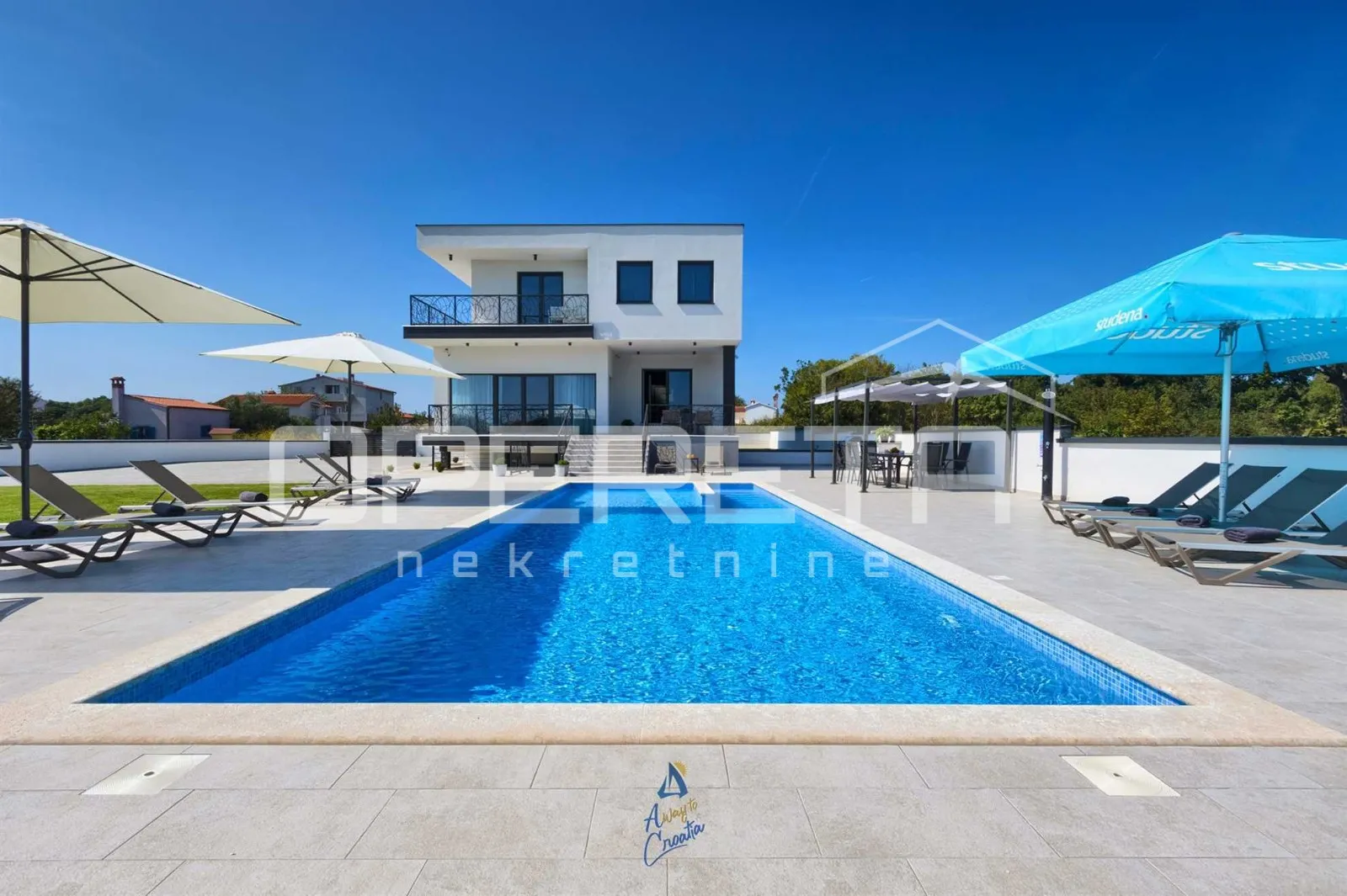 Istra, Fažana - okolica, luksuzna vila na prostranom zemljištu Istra, Fažana - okolica Prodaje se prelijepa, prostrana vila neto površine 296 m2 smještena na zemljištu od 1948 m2 nedaleko od Fažane, svega 2 km od mora. Vila se proteže kroz tri etaže; Suteren je proteže duž cijele površine kuće i može pretvoriti u dodatne sobe i sadržaje. Trenutno se koristi kao spremište. U prizemlju se smjestio dnevni boravak, kuhinja sa blagavaonicom i izlazom na terasu i vrt, toalet, jedna spavaća soba sa kupaonicom. Na prvom katu nalazi se pet spavaćih soba, od kojih su dvije spojene u jednu. Svaka soba ima vlastitu kupaonicu, tv i klima uređaj, te izlaz na zajedničku terasu sa panoramskim pogledom. Na predivnoj okućnici nalazi se travnjak sa sistemom automatskog navodnjavanja, 10 maslina, bazen površine 64 m², prostrano sunčalište s vanjskim tušem, prostor za druženje i objed sa kaminom. * vlastita voda iz bušotine sa filterima + gradska * solarni paneli za dogrijavanje tople vode * 10 parking mjesta * mirno okruženje Odlična lokacija u blizini mora i sadržaja. Vila je več nekoliko godina u uspješnom turističkom najmu i ostvaruje odličan prihod. Udaljenost od sadržaja - 2 km Udaljenost od centra Fažane i Pule - 4.5 km Udaljenost od plaže - 2 km USLUGA KREDITNOG POSREDOVANJA: Opereta ekspert pruža besplatnu uslugu kreditnog posredovanja, uspoređujući ponude više banaka na jednom mjestu. Naš tim objašnjava sve opcije i vodi vas kroz cijeli proces – od konzultacija do isplate kredita, kako biste donijeli informiranu financijsku odluku i uštedjeli vrijeme.