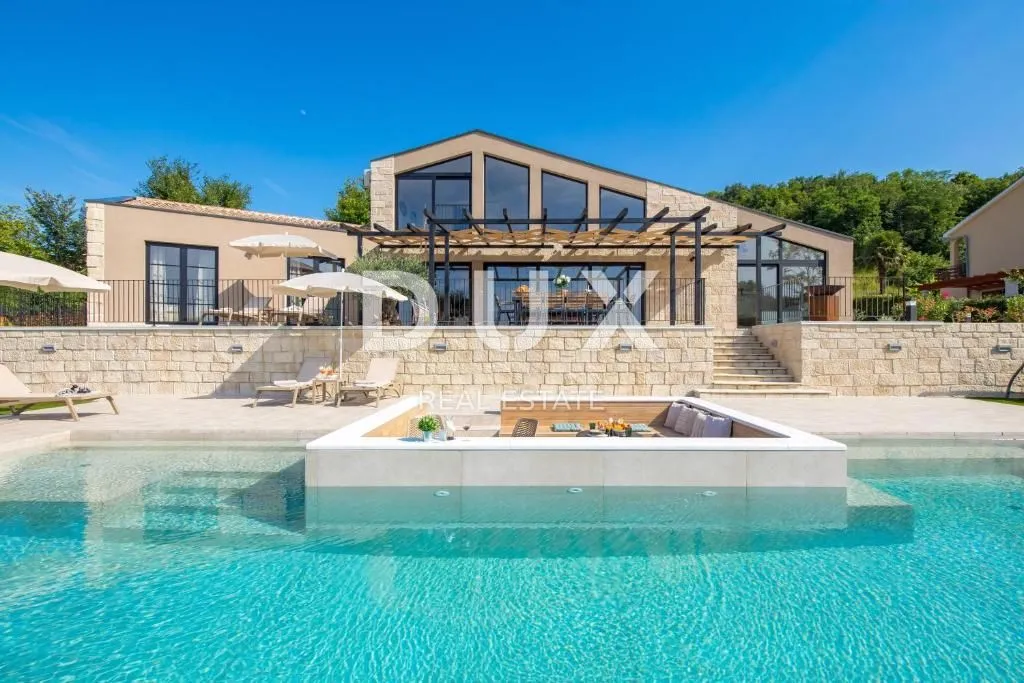 ISTRA, KAŠĆERGA - luksuzna vila s bazenom i okućnicom smještena u središnjoj Istri U DUX ponudi izdvajamo luksuznu vilu s bazenom, stambene površine 230 m² i prostranom okućnicom od 1.400 m², smještenu u mirnom mjestu u središnjoj Istri, u blizini povijesnog Motovuna. Vila pruža izniman panoramski pogled s terasa i prozora koji se prostire preko istarskih brežuljaka, sve do Slovenije i Italije. Ova elegantna nekretnina završena je i potpuno opremljena u srpnju 2024. godine, nudeći najnovije standarde udobnosti i dizajna. Prizemlje vile je prostrano, a veliki prozori ispunjavaju prostor prirodnim svjetlom. Prva etaža sastoji se od open-space dnevnog boravka, kuhinje i blagovaonice. U prizemlju se također nalaze tri spavaće sobe, od kojih svaka ima svoju privatnu kupaonicu. Velike klizne stijene u dnevnom boravku omogućuju izlaz na dvorište i vanjsku blagovaonicu. Iz dnevnog boravka stepenice vode na drugu etažu koja sadrži otvoreni hodnik iz kojeg se pruža pogled na dnevni boravak, vanjski bazen i zelene brežuljke. Na ovoj etaži nalazi se četvrta spavaća soba koja ima svoju kupaonicu i izlaz na privatnu terasu. U vanjskom dijelu vile posebno izdvajamo infinity bazen s preljevom na tri strane i slanom vodom, stvarajući efekt bezgraničnosti koji se savršeno uklapa u prirodni ambijent. Osim bazena, tu se nalazi i prostor za opuštanje u obliku otoka te dječje igralište. Vila također raspolaže dodatnim toaletom i teretanom. Interijer je opremljen ručno izrađenim, visokokvalitetnim namještajem po mjeri, koji odražava profinjen stil i pažnju prema detaljima. Za udobnost tijekom cijele godine, vila ima podno grijanje, osam klima-uređaja te kamin na drva. Vanjski prostor obuhvaća natkriveno parkiralište za tri vozila, a cijela okućnica je ograđena i osvijetljena, pružajući privatnost i sigurnost. Ova vila predstavlja idealan spoj luksuza, funkcionalnosti i prirodnog okruženja, savršena za one koji žele uživati u miru i ljepoti središnje Istre. Za dogovor oko posjeta nekretnini, nazovite agenta s povjerenjem - konzultacije na njemačkom jeziku su moguće. Poštovani klijenti, agencijska provizija naplaćuje se u skladu s Općim uvjetima poslovanja: www.dux-nekretnine.hr/opci-uvjeti-poslovanja ID KOD AGENCIJE: 34859 Marko Šutanovac Agent s licencom Mob: +385 91 189 8332 Tel: +385 91 480 8808 E-mail: marko@dux-nekretnine.hr www.dux-opatija.com