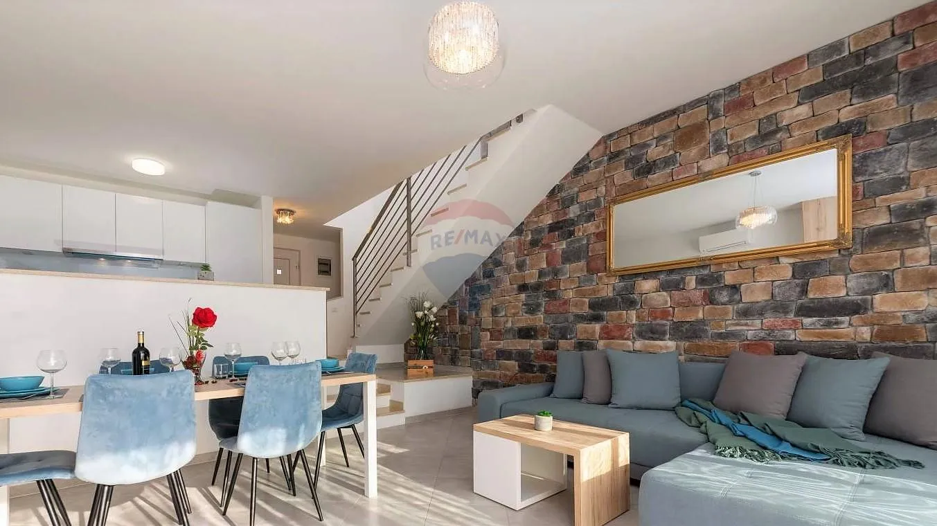 Prodaje se kuća u nizu s bazenom na atraktivnoj poziciji u mirnom i tihom naselju u okolici Umaga. Jedna od najljepših plaža umaške rivijere nalazi se svega 2 km od objekta. Kuća se nalazi u naselju koje ima izuzetno pogodnu mikro-klimu, a s terasa se pruža prekrasan pogled na raskošno zelenilo istarskih šuma i bujnu vegetaciju koja osigurava toliko potreban čisti zrak. Kuća se proteže na dvije etaže ukupne površine 91,44 m2. U prizemlju se nalaze dnevni boravak s blagovaonicom, kuhinja, zasebni toalet i veća terasa kao produžetak otvorenog koncepta dnevnog boravka. Terasa je jednim djelom natkrivena, a u nastavku se nalaze jacuzzi i grijani bazen. Na katu kuće nalaze se dvije spavaće sobe, od kojih jedna ima terasu, te velika kupaonica s masažnom kadom i zasebnim tušem. Nekretnina je sagrađena od vrhunskih materijala i opremljena odličnim namještajem i uređajima. ID KOD AGENCIJE: 300441016-54 Suzana Ranić Prodajni predstavnik Mob: +385 91 641 0067 Tel: +385 52 670 295 Licenca: 48/2022 E-mail: s.ranic@remax-istra.hr www.remax-centarnekretnina.com