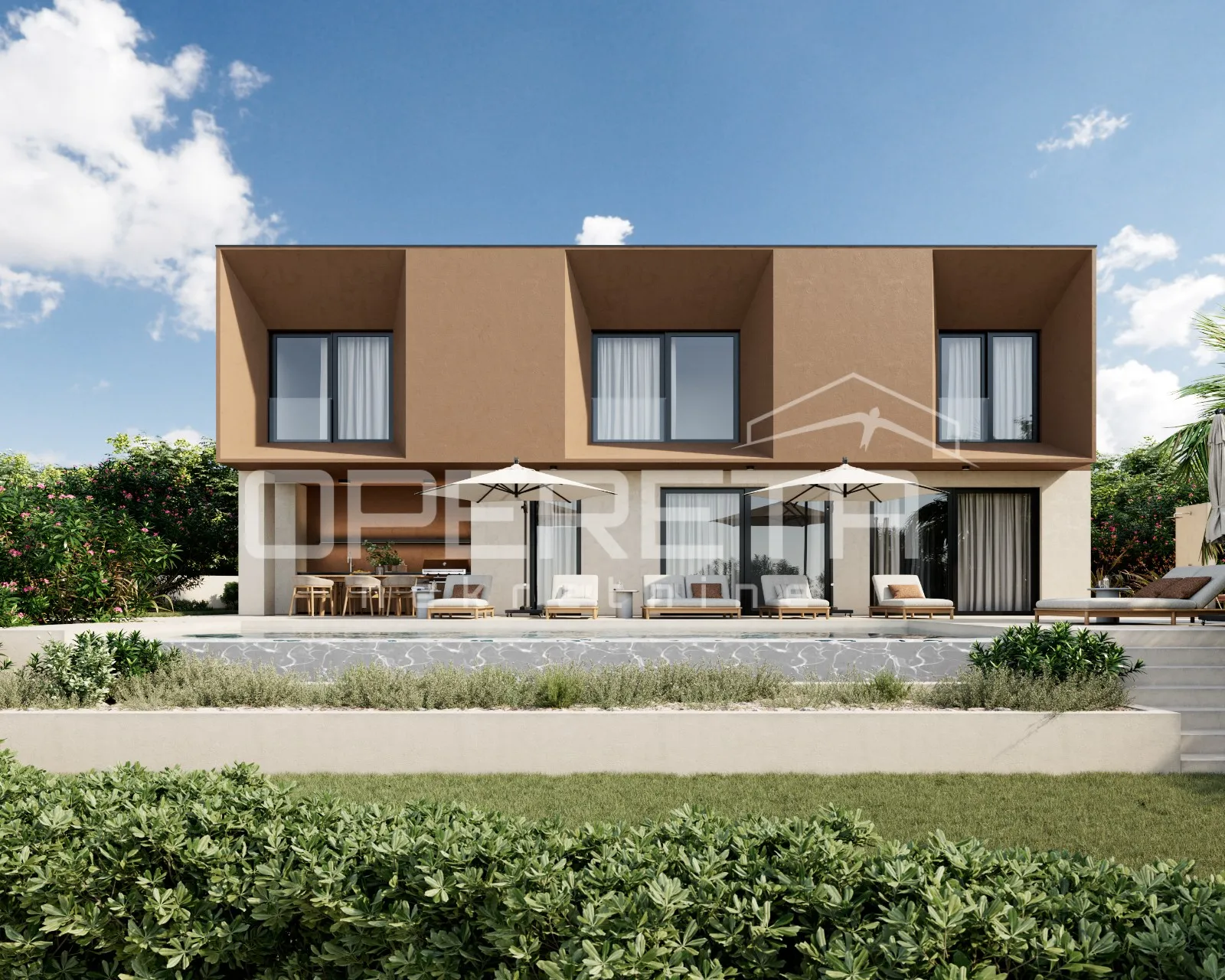 Istra, Labin okolica, predivna moderna vila u blizini mora, novogradnja, pogled Prodaje se samostojeća vila u novogradnji u kompleksu sa ukupno 9 vila, na odličnoj lokaciji, svega 1,5 km od mora. Vila je neto površine 151 m2, dok je zemljište na kojem je smještena 622 m2. Gradnja je započeta, a planirani završetak je do 01.10.2026. Projekt je smješten na odličnoj lokaciji sa prekrasnim pogledom na more. Vila se prodaje gotova, bez sanitarija i rasvjetnih tijela. Raspored: U prizemlju se smjestio open space dnevni boravak sa kuhinjom i blagovaonicom s izlazom na natkrivenu terasu gdje se nalazi ljetna kuhinja, ostava i toalet. Na katu su tri spavaće sobe, svaka sa svojom kupaonicom. Grijanje - podno grijanje po cijeloj kući pomoću toplinske pumpe. U vrtu je planiran preljevni bazen površine 38 m2 sa sunčalištem. U cijenu je uključeno i navodnjavanje travnjaka te vrtne biljke. Moguće nadogradnje/dodatne opreme tijekom gradnje: -namještaj, rasvjeta, sanitarni uređaji Plaćanje po fazama! Cijena je sa uključenim PDV-om- Vlasnik je pravna osoba u sustavu PDV-a, sa dugogodišnjim iskustvom u gradnji vila u Istri. Budućim kupcima koji vilu žele iznajmljivati i ostvarivati prihod, dostupna je usluga upravljanja nekretnine od strane iste firme. USLUGA KREDITNOG POSREDOVANJA: Opereta ekspert pruža besplatnu uslugu kreditnog posredovanja, uspoređujući ponude više banaka na jednom mjestu. Naš tim objašnjava sve opcije i vodi vas kroz cijeli proces – od konzultacija do isplate kredita, kako biste donijeli informiranu financijsku odluku i uštedjeli vrijeme.