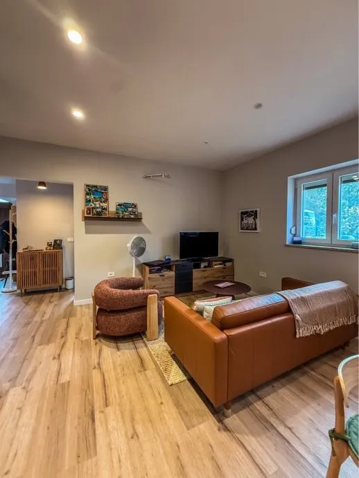 Stan je u potpunosti renoviran – nove instalacije vode i struje, stolarija, podovi i kupaonica izvedena u mikrocementu.