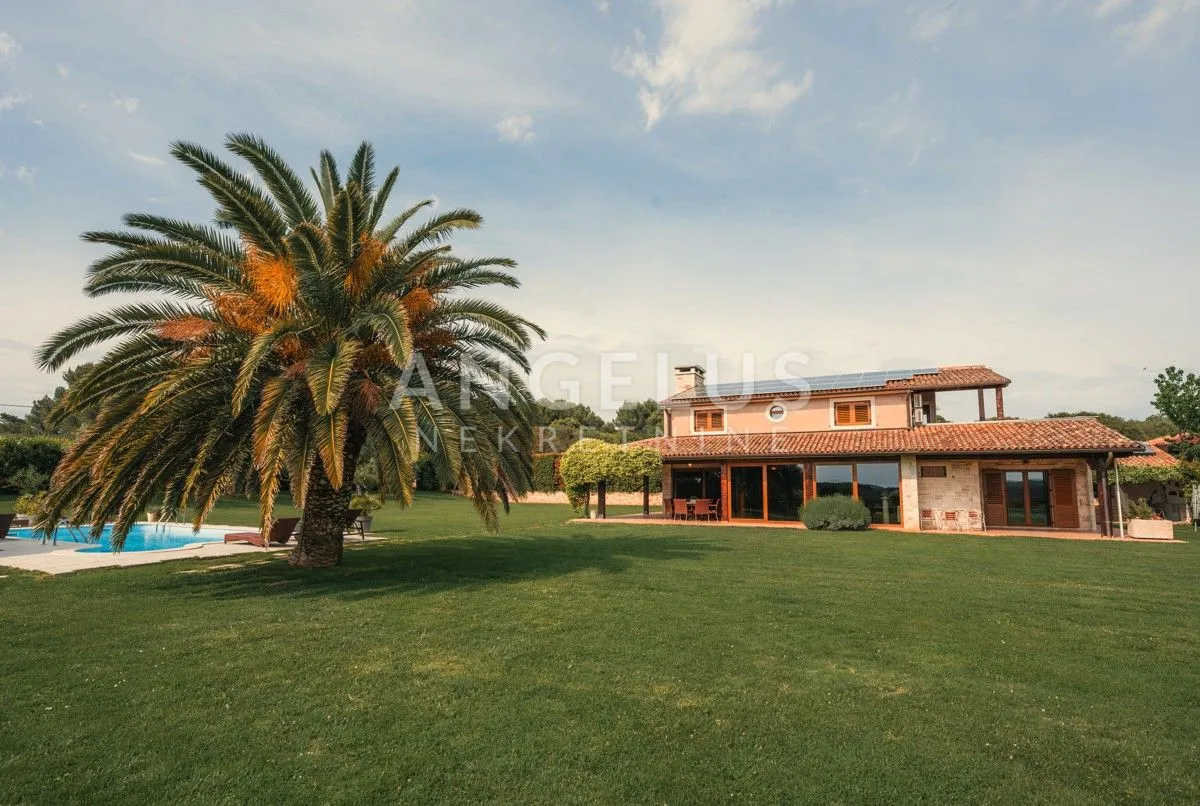 Take a look at this beautiful property - a unique opportunity for those seeking complete peace and luxury near one of the most attractive tourist destinations in southern Istria. This magnificent rustic villa, located in a picturesque setting just a few minutes' drive from Medulin, spreads over an impressive 4000 m² of private, fully fenced land and offers the perfect balance between the Istrian charm of stone and wooden details and modern comfort.