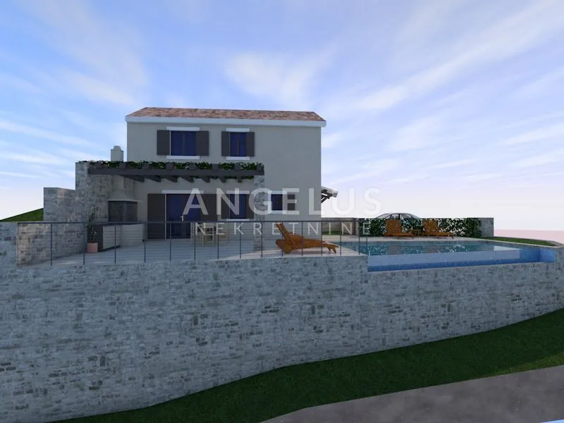 U prizemlju se nalazi dnevni boravak, sa kuhinjom -blagovaonom i jednim toaletom. Izlazom iz blagovaone dolazi se na natkrivenu terasu koja se prostire do bazena a koji se nalazi na litici sa predivnim pogledom. Na katu kuće nalaze se dvije spavaće sobe sa kupaonama. Kuća je u fazi dovršavanja, i svakako oko promjena interiera i exteriera moguće je, isključivo u dogovoru sa vlasnikom kuće koji je ujedno i izgraditelj samog objekta.