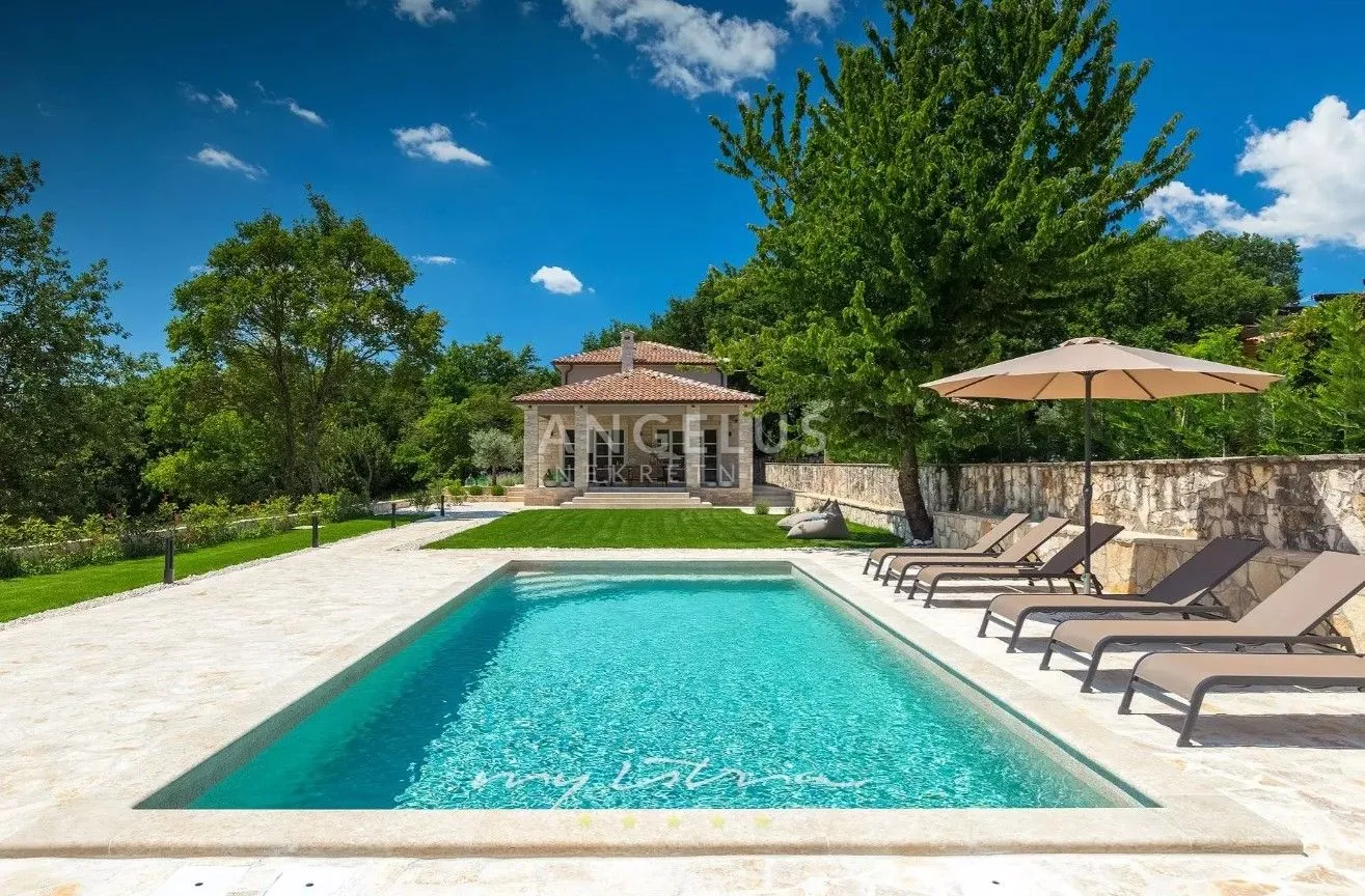 Predivno uređena okućnica površine 1000 m2 s bazenom 4 x 9. Nekretnina je opremljena kombinacijom modernog i raritetnog namještaja te ima puno jedinstvenih umjetnina. Prednost kuće je što je zadnja u predivnom malom selu od samo nekoliko kuca, oko kojeg ima puno zelenila i prirode za duge šetnje te intime i posebnog ugođaja. Nije dozvoljen podnajam.