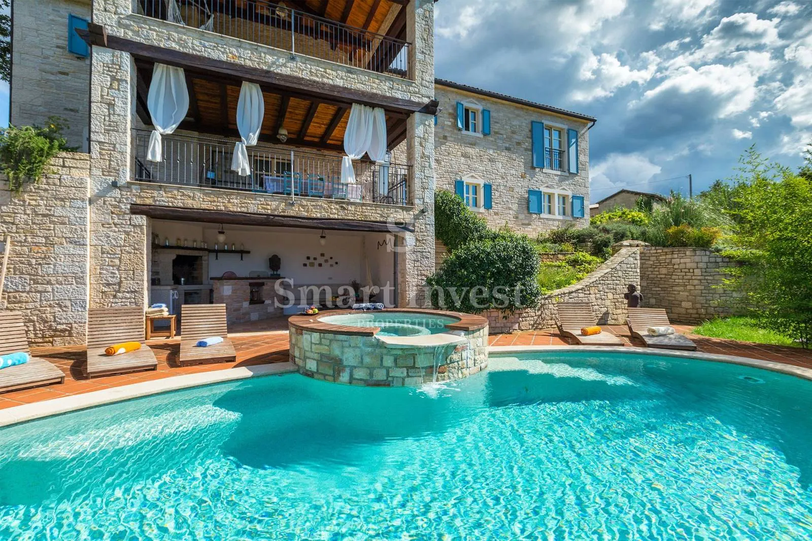 JEDINSTVENA KAMENA VILA S POGLEDOM NA MORE U SRCU ZELENE ISTRE Na prodaju je luksuzno opremljena kamena vila s grijanjim infinity bazenom i očaravajućim pogledom na more i zelenilom na iznimnoj lokaciji u malom Istarskom selu svega 20 minuta vožnje udaljenom od Poreča i mora. Ova jedinstvena vila poznatog hrvatskog dizajnera interijera se smatra jednom od najljepših u Istri. Cijela vila ukrašena je vrhunskim dizajnerskim i antiknim namještajem, ukrasima i skulpturama koje je vlasnik godinama skupljao na putovanjima diljem svijeta te među kojima se nalaze i vrijedna umjetnička djela. A njena iznimna lokacija s prekrasnim pogledom na more i netaknutu prirodu čini ovu nekretninu pravim biserom Istre. RASPORED I OPREMA Vila površine 306 m2 smještena je na zemljištu površine 1171 m2, ima 3 spavaće sobe i 3 kupaonice + 1 WC. U prizemlju se nalaze predsoblje, prostrana kuhinja rađena po mjeri, blagovaonica te prostrani dnevni boravak koji je opremljen s zidanim kaminom, dvije Roche Bobois sofe dostavljene iz Verone, zvučnim surround sustavom Bose, antiknim lusterima i ručno rađenim stolom za objedovanje iz Sienne koji je ujedno i biljar. Iz dnevnog boravka se izlazi na natkrivenu terasu s pogledom na šumu i livade sve do mora. U prizemlju se također nalaze WC za goste, praonica rublja, ostava s duplim hladnjakom. Kameno stubište vodi na kat gdje se nalaze tri prostrane spavaće sobe, svaka sa vlastitom kupaonom i garderobom, te natkrivena terasa s koje se pruža predivan pogled na more i zelenilo, ovdje možete uživati u očaravajućim zalascima sunca, miru i tišini koje pruža priroda. U suterenu je smješten natkriveni salon sa kaminom ispred kojeg se nalazi popločena terasa s ovalnim infinity bazenom od 43 m2 opremljenim sustavom za podgrijavanje i protustrujno plivanje, te izdvojenim jacuzzijem. Ispod bazena nalazi se rustikalno građen vanjski tuš s vodopadom. Zbog debljine i kvalitete kamenih zidova, ovoj vili nije potrebna klimatizacija tijekom ljetnih mjeseci. Za zimu tu je centralno grijanje s podnim grijanjem u prizemlju i radijatorima na katu, a u dnevnom boravku je kamin za dodatnu udobnost. Vila je opremljena najmodernijim alarmnim sustavom i kapijom na daljansko otvaranje. Vrt je ukrašen ogromnim grmovima lavande, bujnim stablima lovora i maslina od kojih je godišnje moguće proizvesti oko 10 litara vrhunskog domaćeg maslinovog ulja. U posebnom dijelu vrta nalazi se ljetna kuhinja s klasičnim roštiljem i pravom zidanom pećnicom za pizzu. Ova predivna vila će očarati svojom ljepotom sve ljubitelje antiknih predmeta i namještaja kao i prirode, mira i tišine. Zbog svoje lokacije i opremljenost ova nekretnina je idealna investicija za turističku rentu ili za miran obiteljski život. LOKACIJA Vila je smještena u malom istarskom selu, okružena prirodom, a od mora i plaža kao i centra Poreča, kao i romantičnog Vrsara udaljena svega 20 minuta vožnje. Najbliži restorani i trgovina udaljeni su svega 5 minuta vožnje. Za više informacija i razgled nazovite +385/91/320-0021 ID KOD AGENCIJE: 12930 Agencija Opatija Ovlašteni posrednik Mob: +385/99/320-0008 E-mail: office@smart-invest.hr www.smart-invest.hr