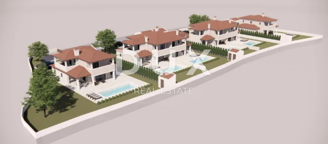 Prodaje se kompleks od 4 obiteljske građevine u Premanturi - 200 m OD PLAŽE!! Ova nekretnina nalazi se u Premanturi na najboljoj lokaciji u Istri. Premantura je najjužnije mjesto u Istri te završava s Rt.om Kamenjak – parkom prirode kojeg krase kilometri razvijene obale s najljepšim plažama u ovom dijelu Mediteranskog mora. Plaže su šljunčane i stjenovite te pružaju intiman kutak svakome koji traži malo mira i prostranstvo pogleda, prekrasno plavetnilo, izlaske i zalaske sunca, tirkizne boje, borove šumice. Ova vila je samo nekoliko minuta pješke udaljena od prve takve plaže na Rt.u Kamenjak koja pruža izlazak sunca, jutarnje sunčanje te popodnevno uživanje u hladovini. S druge strane na zapadnoj obali Kamenjaka pak možete pronaći jutarnje skrivanje u hladovini i popodnevno sunčanje i zalazak sunca. Brojni sadržaj za djecu, kafići i restorani uz more, biciklizam, šetnja, trčanje, endemske biljke, edukativni sadržaj kao što je put dinosaura i razni drugi sadržaj krasi ovaj predivan park prirode. Premantura kao malo mjesto pruža bijeg od svakodnevne gužve i buke većih gradova te nudi gurmanske, edukativne i zabavne sadržaje za djecu i odrasle te vas sigurno neće razočarati svojim stilom istarskog manjeg mjesta uz more, opušten temperament, ugodno susjedstvo i sunčani dani dočekat će vas tijekom cijele godine te će vam biti drago što ste izabrali baš ovo mjesto za svoj novi dom i mjesto za odmor i ljetovanje. Na samo 200 m od predivnih plaža, na izoliranoj lokaciji u Premanturi nalazi se ovaj kompleks od 4 obiteljske građevine. Dvije građevine su kuće - samostojeće s bazenom, garažom i okućnicom, dok su dvije građevine dupleks i sastoje se od dvije spojene kuće svaka sa svojim bazenom, garažom i okućnicom. Prva samostojeća kuća nalazi se na građevinskom zemljištu od 884 m2. Ima 181,69 m2 stambenog prostora, 112 m2 na prizemlju i 69,69 m2 na 1. katu. Garaža od 35,48 m2 te strojarnica od 6,37 m2. Na prizemlju se nalazi ulazni prostor / hodnik, dnevni zahod, kupatilo, spavaća soba, dnevni prostor: dnevni boravak blagavaona i kuhinja te dvije natkrivene terase, spramište i tehnička soba. Unutarnje stepenište vodi nas na 1. kat gdje se nalaze još 2 spavaće sobe, 2 kupatila i hodnik te dvije terase. Bazen je veličine 38 m2. Na prostranoj okućnici smjestila su se 3 parkirna mjesta - dva vanjska i jedno u graraži. Zelena površina 368 m2 daje privatnost i mogćnost za nesmetano uživanje na svježem zraku. Druga dupleks građevina smještena je na građevinskom zemljištu od 1200 m2, a sastoji se od dvije kuće s bazenom zrcalnog tlocrta. Dupleks kuća ima 345,84 m2 stambenog prostora i garažu od 36 m2 te strojarnicu od 5,70 m2. Na prizemlju svake od građevine nalazi se ulazni prostor / hodnik, tehnička soba, 1 spavaća soba, kupatilo, spremište, dnevni prostor: dnevni boravak blagavaona i kuhinja te dvije natkrivene terase. Unutarnje stepenište vodi nas na prvi kat gdje se nalaze još 2 spavaće sobe, 2 kupatila i hodnik s još 2 natkrivene terase. Ukupne površine 164 m2. Treća dupleks građevina identična je drugoj samo je zrcalna, istih kvadratura. Četvrta samostojeća građevina - kuća s bazenom, garažom i okućnicom nalazi se nagrađevinskom zemljištu od 1054 m2, ima 200,19 m2 stambenog prostora te malo veću zelenu površinu od 531 m2. Sve ostalo je isto kao na prvoj građevini, samo je zrcalno okrenuta. Kuće se prodaju u niskoj roh-bau fazi: kuće ozidane sa krovom i limarijom + bazeni AB radovi sa 1. fazom instalacija + svi ogradni zidovi. Kuće se mogu kupiti individualno ili zajedno - cijena prikazana na oglasu je cijena za sve 4 građevine. Odlična prilika, neponovljiva pozicija, netaknuta priroda - rt. Kamenjak - park prirode s predivnom obalom, blaga mediteranska klima, tirkizno pitomo more, na najboljoj lokaciji u Europi - savršeno za cijelogodišnji boravak kao i za ljetovanje. Blizina svih potrebnih sadržaja. Za više informacija obratite se agentici. Poštovani klijenti, agencijska provizija naplaćuje se u skladu s Općim uvjetima poslovanja: www.dux-nekretnine.hr/opci-uvjeti-poslovanja ID KOD AGENCIJE: 34620 Ana Glavaš Agent s licencom Mob: +385 97 757 1657 Tel: +385 99 640 8438 E-mail: ana@dux-istra.com www.dux-istra.com