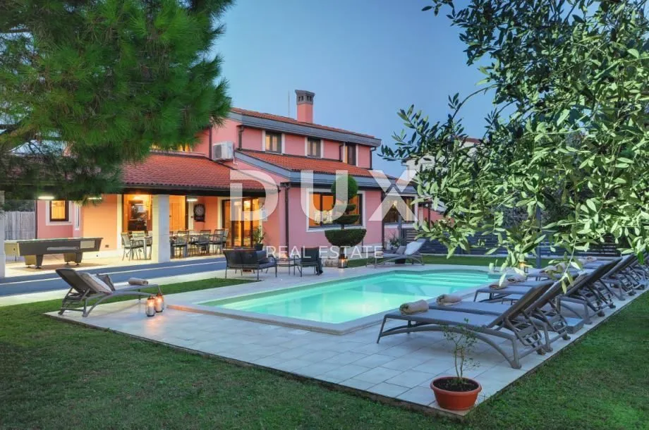 Prodaje se MODERNA KUĆA S BAZENOM (P+1) na Velom Vrhu (Pula). Sastoji se od 5 spavaćih soba, tri kupaone i jednog wc-a. Prizemlje: wc, kupaona, jedna spavaća soba, kuhinja, blagovaonica i dnevni boravak koji imaju izlaz na natkrivenu terasu s pogledom na okućnicu i bazen. Na natkrivenoj terasi nalazi se biljar, stolni nogomet, pikado, blagovaonski stol za 12 ljudi i roštilj. Blagovaonica i dnevni boravak otvorenog su prostora. Postoji igraći vrt za djecu u sklopu vanjskog prostora. 1. kat: 2 kupaone, 2 natkrivene terase, 4 spavaće sobe (dvije sa izlazom na terasu) Parking: jedno natkriveno vanjsko parkirno mjesto i 4 ne natkrivena parkirna mjesta u prostoru okućnice. Također mogućnost korištenja ceste unutar naselja za dodatni parking. Uz objekt koji se nalazi na slikama, postoji podrum 30 m2, konoba sa kaminom i wc-om, stan sa jednim kupatilom, jednom spavaćom sobom i dnevnim boravkom. Navedeni stan ima izlaz na vanjski prostor površine 200 m2. Cijelo imanje je ograđeno što pruža slobodnu i privatnost. Samo 2,5 km od predivnih uređenih plaža, kao i divljih netaknutih plaža okruženih mediteranskim biljem i raslinjem. Rimski Amfiteatar na samo 2,5 km, kao i centar Pule sa svim sadržajima potrebnim za život modernog čovjeka. Vlasnički list bez tereta! Uporabna dozvola! Za više informacija nazovite na broj telefona: 097 757 1657 - Ana Poštovani klijenti, agencijska provizija naplaćuje se u skladu s Općim uvjetima poslovanja: www.dux-nekretnine.hr/opci-uvjeti-poslovanja ID KOD AGENCIJE: 6134 Ana Glavaš Agent s licencom Mob: +385 97 757 1657 Tel: +385 99 640 8438 E-mail: ana@dux-istra.com www.dux-istra.com