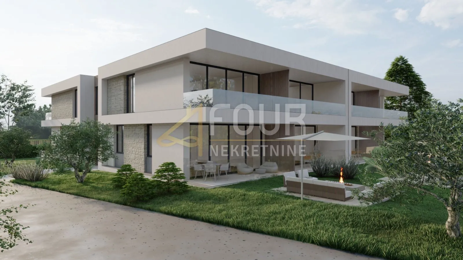 Na prodaju je moderan i luksuzan stan u prizemlju novogradnje, ukupne površine 58.32m2, s vlastitim dijelom dvorišta - 35m2. Ovaj stan nudi savršen spoj udobnosti i praktičnosti, s prostranim dnevnim boravkom koji je povezan s kuhinjom i blagovaonicom u open space konceptu, hodnikom te zasebnom spavaćom sobom i modernom kupaonicom. Uz stan je osigurano jedno vanjsko parkirno mjesto, a postoji mogućnost kupnje dodatnog parkirnog mjesta, kao i električnog punjača za vozila – cijene na upit. Korišteni su isključivo visokokvalitetni materijali – talijanske pločice, HansGrohe slavine, stolarija PVC s troslojnim staklima i el. roletama, balkonska vrata podizno/klizna – koji ovom stanu daju osjećaj luksuza i modernog dizajna. Grijanje i hlađenje osigurava MultiSplit sustav, dok podno grijanje u kupaonici i kuhinji pruža dodatnu udobnost. Zgrada je dizajnirana s elegantnim kamenim oblogama i fasadom debljine 10 cm, što jamči izvrsnu izolaciju i energetski učinkovito stanovanje. Predviđen završetak radova je na ljeto 2026. godine. Smješten u mirnom naselju, te se nalazi u neposrednoj blizini svih potrebnih sadržaja – škola, vrtića, trgovina i javnog prijevoza – a samo 7 km udaljen je od Rovinja, čineći ovu nekretninu savršenim izborom za obiteljski život ili kao investiciju. Poštovani klijenti, agencijska provizija naplaćuje se u skladu s Općim uvjetima poslovanja. ID KOD AGENCIJE: S2833 Ured Poreč Mob: +385994441442 Tel: +385 51 619 770 E-mail: info@four-nekretnine.hr https://four-nekretnine.hr/