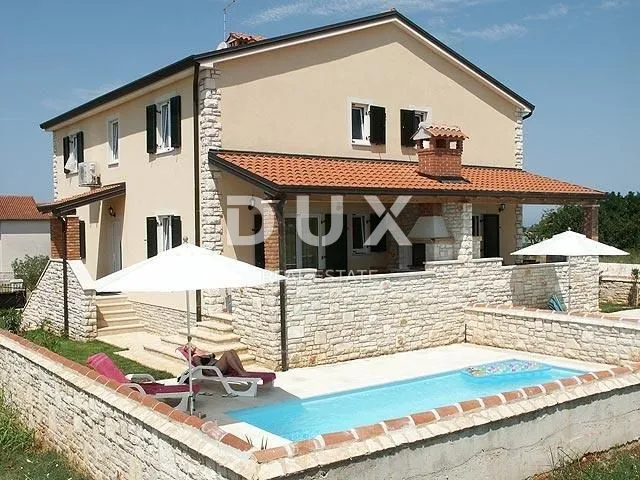 ISTRA, UMAG (okolica) - Dvojna vila 300m od mora Umag je atraktivan istarski gradić koji se nalazi na krajnjem zapadu hrvatske obale i odlično je povezan s ostalim europskim zemljama. Umag, grad turizma i sporta, skriva bogatu povijest koja se može osjetiti šetajući se predivnim ulicama i šetnicama uz more a stare građevine u kombinaciji s moderno uređenim dijelovima obale sjajan su spoj. Grad i okolicu krasi izrazito blaga mediteranska klima, veliki broj sunčanih dana te izvanredno čisto more. Umag je gradić s vrlo razgranatom i zanimljivom obalom na kojoj se nalaze raznovrsne plaže. Od pješčanih i šljunčanih, preko kamenih i betoniranih pa sve do stjenovitih plaža. U zaleđu se nalaze prekrasna brežuljkasta mjesta-utvrde s nevjerojatnim vidicima i zadivljujuće prošlost te mnoštvo agroturizama s autohtonim delicijama i prijateljskim domaćinima. Umag se sastoji od 23 naselja. Prodaje se prekrasna dvojna kuća sa bazenom, smještena na mirnoj lokaciji 300 m od mora i plaže te okružena prirodom i zelenilom. Udaljena je 6 km od grada Umaga, 5 km od grada Novigrada i 10 km od graničnog prijelaza sa Slovenijom. Ova šarmantna kuća s kamenim detaljima ukupne površine 197 m2 s okućnicom od 310 m2, proteže se na 2 etaže, prizemlje i kat. U prizemlju kuće smješteni su, ulaz, hodnik, dnevni boravak s blagovaonicom i kuhinjom otvorenog tipa te natkrivena terasa sa roštiljem i kvalitetnim vrtnim namještajem. Iz dnevnog boravka pristupa se direktno natkrivenoj terasi te bazenu površine 25 m2 sa sunčalištem i uređenom vrtu. Prvom katu pristupa se unutarnjim stubištem gdje se nalaze 2 kupatila te 3 spavaće sobe. Kuća ima i vlastito natkriveno parkirno mjesto te se prodaje kompletno namještena i uređena. Mirna i lijepa lokacija te blizina svih bitnih sadržaja čini ovu nekretninu idealnom prilikom za sve koji traže lijepu, prostranu i komfornu kuću sa prostranom okućnicom koju je moguće prilagoditi kako za odmor i stanovanje tako i najam u turističke svrhe. Poštovani klijenti, agencijska provizija naplaćuje se u skladu s Općim uvjetima poslovanja: www.dux-nekretnine.hr/opci-uvjeti-poslovanja ID KOD AGENCIJE: 39373 Evan Beaković Agent s licencom Mob: +385 91 54 833 54 Tel: +385 99 640 8438 E-mail: evan@dux-nekretnine.hr www.dux-istra.com