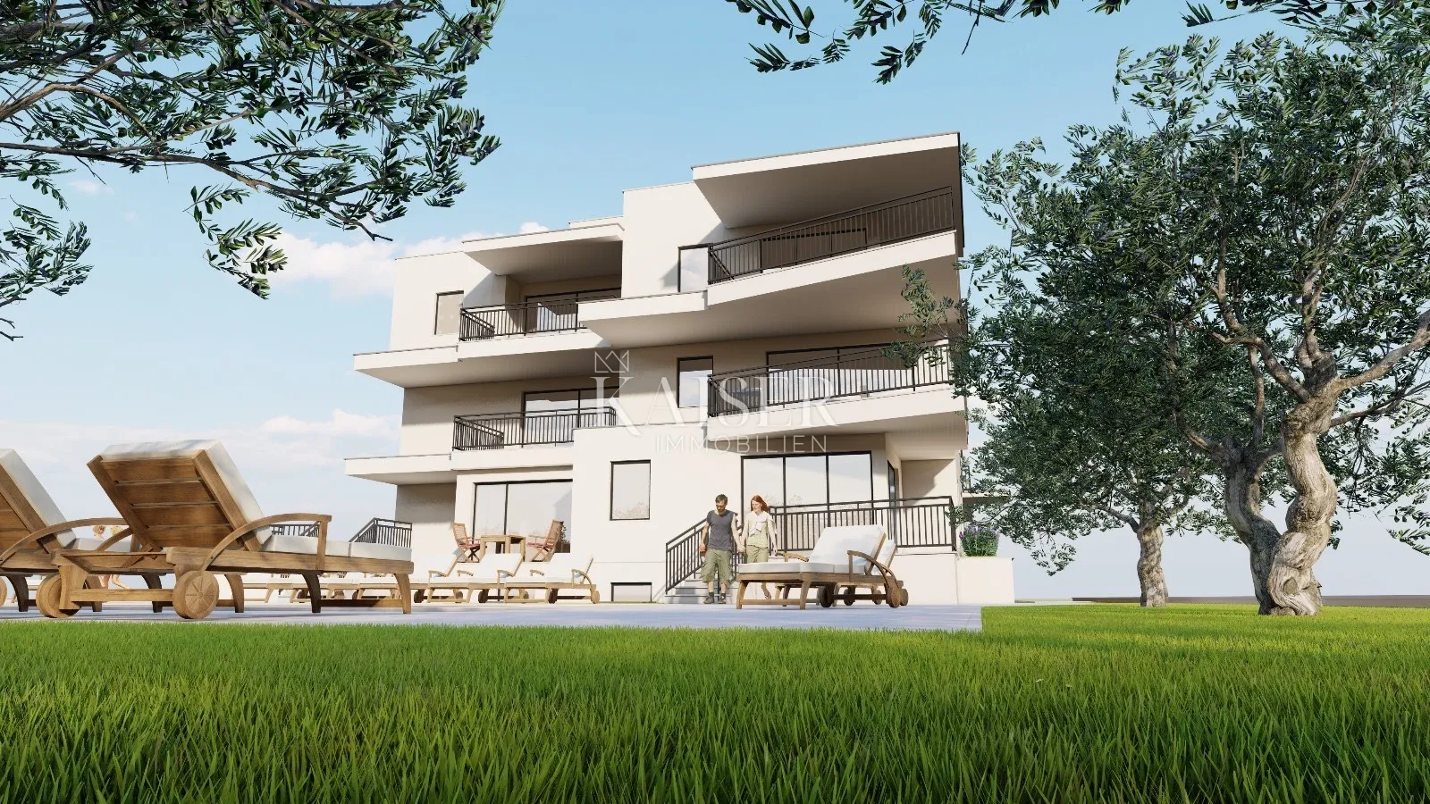 Kaiser Immobilien predstavlja vam stan u novogradnji na samo 500 metara do mora sa garažnim mjestom i korištenjem bazena. Stan S5A je smješten na drugom katu moderne novogradnje sa 12 stanova. Ukupan neto korisna površina stana iznosi 68 m2. Sastoji se od dnevnog boravka sa kuhinjom i blagovaonicom otvorenog tipa, 2 spavaće sobe, kupaonice i hodnika. Iz dnevnog boravka se izlazi na natkrivenu terasu veličine 14m2 sa koje puca prekrasan pogled na more. Stanu pripada ostava i jedno parkirno mjesto u garaži. Posebnost ovog stana je i mogućnost korištenja zajedničkog grijanog bazena površine 8 x 12 m koji će biti smješten ispred zgrade, što je izvrsna prilika za produžetak turističke sezone. Stan se gradi od visokokvalitetnih materijala i vrhunske završne obrade, ima podno grijanjem na dizalicu topline i hlađenje putem klima uređaje, a sve to sa mogućnošću upravljanja na daljinu. Za uštedu energije tu je i PVC stolarija sa troslojnim staklom, komarnicima i roletama na struju. Podovi će biti od visokokvalitetne keramike, a na hodnicima zgrade i terasama biti će postavljeni kamen granit. Za vašu sigurnost tu su blindirana ulazna vrata te priprema za ugradnju alarma. Cijena stana uključuje PDV, pa kupac ne plaća porez na promet nekretnina. Planirani završetak gradnje je krajem 2025. godine. Zbog svoje lokacije u blizini mora i sadržaja stan je odličan izbor za korištenje u turističke svrhe ili za odmor, ali i za svakodnevni život. Na samo 10 minuta lagane šetnje nalazi se prekrasne plaže i trgovina, restorani i kafići dok je centar grada Umaga sa svim drugim potrebnim sadržajima udaljen na 5 minuta lagane vožnje autom. Posrednička naknada za kupca iznosi 3% + PDV. Naknada pokriva sve usluge vezane uz kupnju i plaća se samo u slučaju kupnje nekretnine, pri sklapanju prvog pravnog posla. Slobodno nas kontaktirajte za dodatne informacije i dogovor oko obilaska nekretnine: Damir Mlacović e-mail: damir@kaiser-immobilien.hr tel: +385-98-339-933 ID KOD AGENCIJE: 133-102 Damir Mlacović Agent s licencom u posredovanju u prometu nekretnina Mob: +38598339933, +385995677888 E-mail: damir@kaiser-immobilien.hr www.kaiser-immobilien.hr