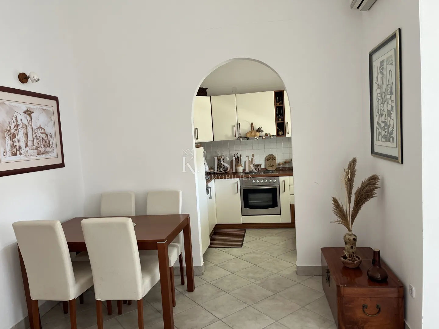 Vabriga je šarmantno i sve traženije istarsko naselje smješteno između Poreča i Novigrada, u sklopu Tar-Vabriga. Područje Tar-Vabriga poznato je po vrhunskim istarskim vinima i maslinovom ulju, a u blizini se nalaze brojne renomirane vinarije poput Vina Rossi i Agrolaguna. Ljubitelji prirode uživat će u uređenim šetnicama i biciklističkim stazama koje vode kroz vinograde, maslinike i uz obalu mora. U neposrednoj blizini nalaze se i atraktivne plaže te poznate lokacije poput Lanterna Beach, idealne za kupanje i opuštanje. Ovo područje nudi savršen spoj aktivnog odmora, gastronomije i mediteranskog načina života, što ga čini izuzetno privlačnim za kupce nekretnina. Na prodaju je lijep i funkcionalan stan površine 53 m², smješten u mirnom i uređenom dijelu Vabrige, svega nekoliko minuta vožnje od mora i centra Tara. Stan se nalazi na prvom katu održavane zgrade okružene zelenilom i obiteljskim kućama, što osigurava privatnost i ugodan boravak tijekom cijele godine. Raspored prostorija: dvije spavaće sobe dnevni boravak s izlazom na balkon kuhinja i blagovaonica (open space koncept) kupaonica spremište (7,10 m²) vlastito parkirno mjesto Stan je potpuno namješten i opremljen te se prodaje u viđenom stanju – spreman za odmah useljenje bez dodatnih ulaganja. Posebnu vrijednost daje: odličan raspored prostorija puno prirodnog svjetla prostrani balkon s pogledom na mirno naselje tiha i ugodna lokacija Osnovne informacije: površina stana: 53 m² spremište: 7,10 m² parkirno mjesto: 1 udaljenost od mora: cca 1,5 km Stan se nalazi u blizini svih važnih sadržaja – trgovina, restorana, šetnica i plaža, što ga čini idealnim za stalno stanovanje, odmor ili kao sigurnu investiciju za turistički najam. Provizija agencije za kupca iznosi 3 % + PDV. Provizija pokriva sve usluge vezane uz kupnju i plaća se samo u slučaju kupovine nekretnine, kod zaključenja prvog pravnog akta. ID kod nekretnine: 126-105 Za detaljnije informacije, molimo Vas, kontaktirajte: Ilijana Mrljić Tel: +385 97 683 9504 E-mail: ilijana@kaiser-immobilien.hr ID KOD AGENCIJE: 126-108 Ilijana Mrljić Agent s licencom u posredovanju u prometu nekretnina Mob: +385976839504, +385995677888 E-mail: ilijana@kaiser-immobilien.hr www.kaiser-immobilien.hr