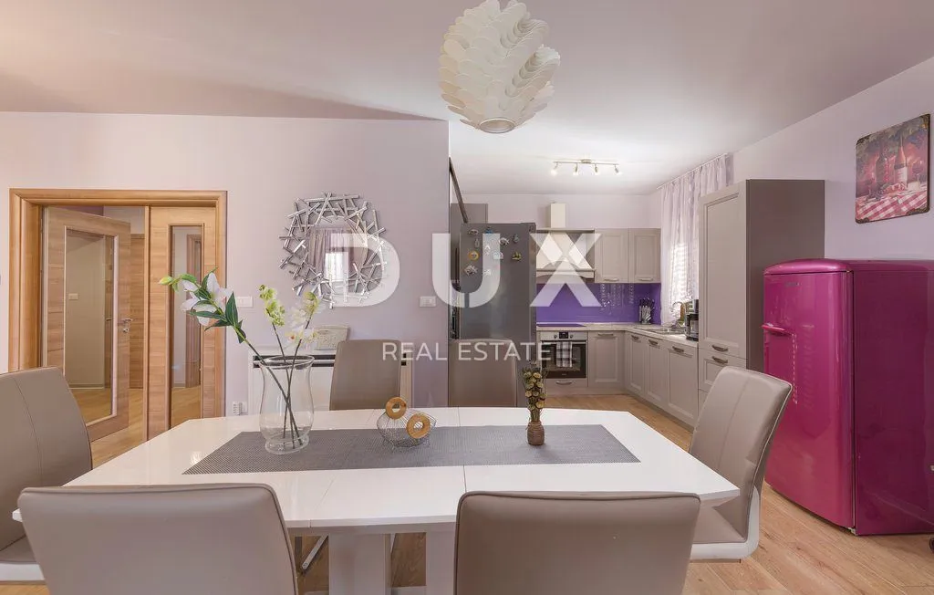 ISTRA, VOLME - Luksuzan stan 200m od mora s vlastitim bazenom Luksuzni stan u okolici Medulina - savršen izbor za udoban život uz more! U ponudi imamo predivan stan koji je upravo stigao na tržište. Smješten u slikovitoj okolici Medulina, ovaj stan u novogradnji pruža vam sve što ste oduvijek sanjali. Ovaj prostrani stan prostire se na 246,19 m2 i nalazi se u prizemlju zgrade koja se sastoji od ukupno četiri stambene jedinice. Vaš novi dom ima sve što vam treba za udoban i moderan život. Uz to, ovaj stan ima i vlastiti bazen i vrt. Stan površine 185,40m2 sastoji se od prostranog dnevnog boravka s kuhinjom i blagovaonicom, radne sobe, tri spavaće sobe od kojih je jedna s vlastitom kupaonicom te još dodatne 2 kupaonice i ostave. Stan obiluje svjetlošću zahvaljujući prirodnom osvjetljenju koje prodire kroz velike prozore. Posebno je vrijedno spomenuti da dnevni boravak ima izlaz na terasu koja vodi do sunčališta i bazena, pružajući vam dodatni prostor za opuštanje i rekreaciju na otvorenom. Uz stan dolazi i jedno parkirno mjesto (2,90), garaža (9,08m2) te spremište u podrumu (4,53) koje će vam osigurati praktičnost i olakšati vašu svakodnevicu. Dodatne informacije: - vlastiti bazen (5x8) - vlastita kotlovnica u podrumu - automatsko navodnjavanje okoliša - podno grijanje na toplinsku pumpu - fenkojleri za grijanje i hlađenje Lokacija ovog stana je jednostavno savršena. Na samo 200 metara udaljenosti od mora, moći ćete uživati u blagodatima plaže i osvježiti se kad god poželite. Okolica Medulina nudi raznolike sadržaje, kao što su restorani, kafići, trgovine i prekrasna priroda za istraživanje. Ne propustite ovu jedinstvenu priliku! Poštovani klijenti, agencijska provizija naplaćuje se u skladu s Općim uvjetima poslovanja www.dux-nekretnine.hr/opci-uvjeti-poslovanja ID KOD AGENCIJE: 21974 Ivana Škoro Agent s licencom Mob: +385 95 388 1059 Tel: +385 99 640 8438 E-mail: ivana@dux-istra.com www.dux-istra.com Ana Glavaš Agent s licencom Mob: +385 97 757 1657 Tel: +385 99 640 8438 E-mail: ana@dux-istra.com www.dux-istra.com