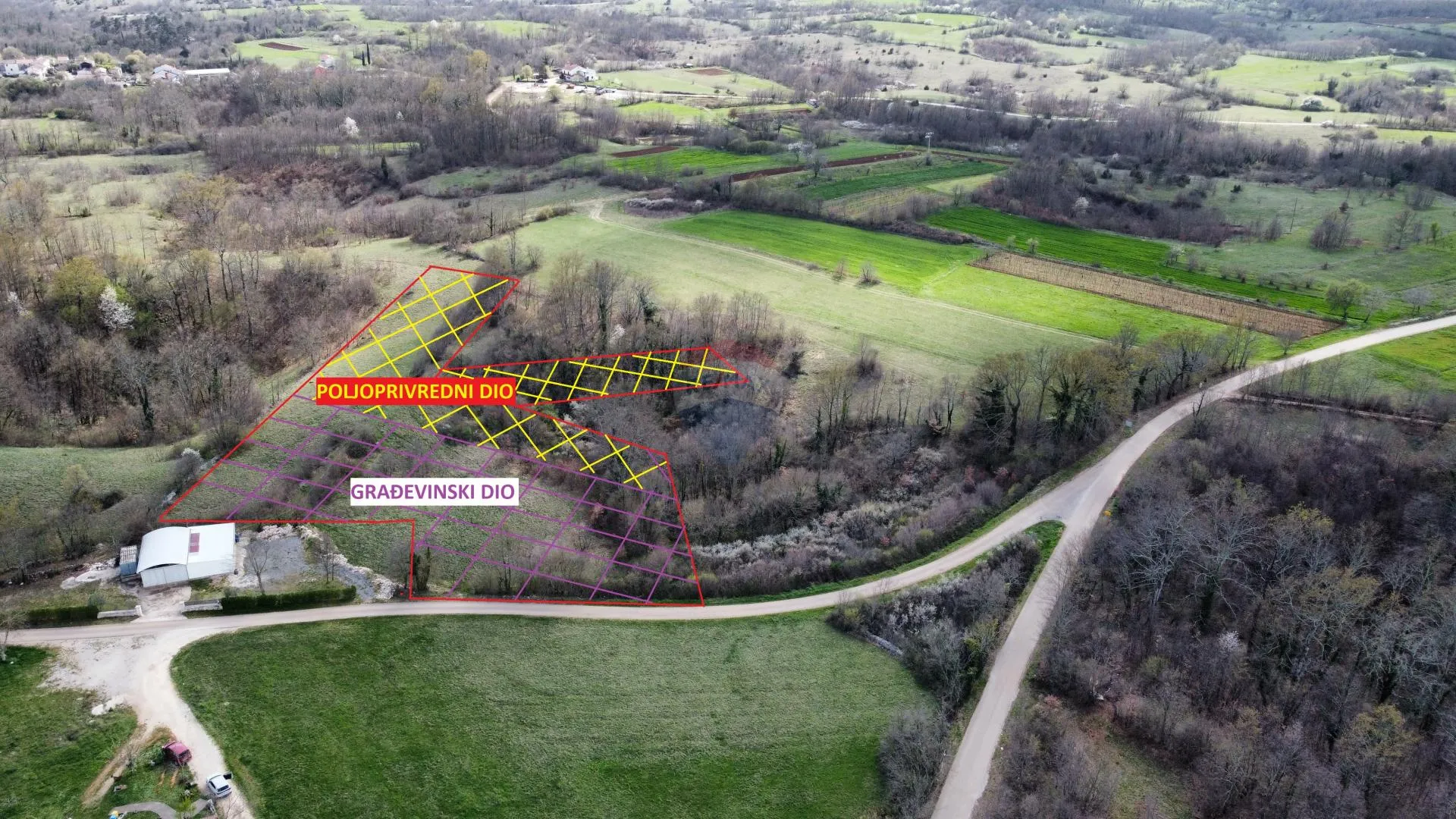 Prodajemo kombinirano građevinsko i poljoprivredno zemljište na rubu urbanizirane zone, okruženo šumama i pašnjacima. Građevinski dio iznosi cca 3.500 m2 dok negrađevinski cca 5.325 m2. Zemljište je pogodno za izgradnju do tri kuće s bazenom. Na zemljištu se mogu graditi stambene kuće i vile s dvije nadzemne etaže. Zemljište je jugozapadnog nagiba a pristup je omogućen direktno sa asfaltirane prometnice koja prolazi uzduž sjeverne granice zemljišta što omogućava parcelaciju na dvije do tri manje parcele. Infrastruktura prolazi uz rub parcele. Lokacija je odlično povezana sa okolnim mjestima a najbliže se nalazi Žminj koji je udaljen tri kilometra a Rovinj i more su udaljeni 20ak kilometara. ID KOD AGENCIJE: 300571006-226 Velibor Brkić Prodajni predstavnik Mob: +385 91 641 0182 Tel: +385 52 638 222 Fax: +385 51 499 801 Licenca: 92/2022 E-mail: v.brkic@remax-istra.hr remax-centarnekretnina.com