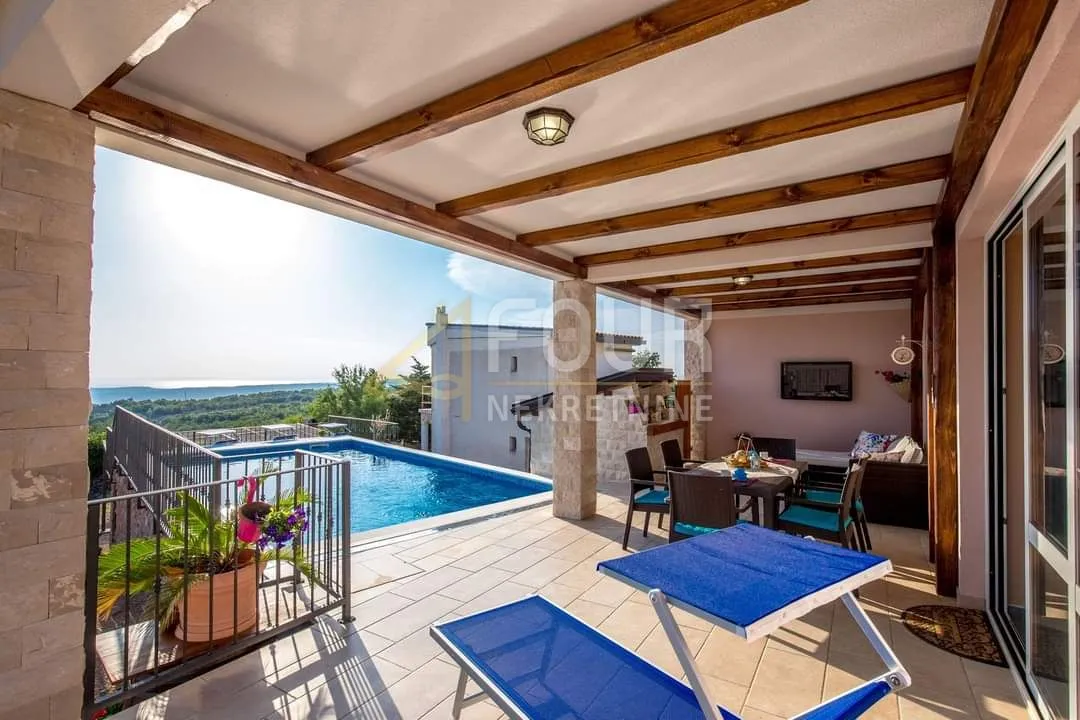 U ponudi je samostojeća kuća s bazenom, okućnicom od 442m2 i prekrasnim pogledom na more, otoke i Velebit. Kuća je novije gradnje, ukupne površine 213.23m2. U prizemlju se nalazi dnevni boravak s kaminom, kuhinja s blagovaonicom, sauna i terasa 15.8m2 s roštiljem i vanjskim tušem. Na prvom katu nalaze se dvije spavaće sobe s vlastitim kupaonicama i terasama (2x 15.9m2). Kuća je vrlo lijepo uređena s detaljima rustikalnog stila koji daje dodatnu toplinu ovoj primorskoj kući. Na okućnici se nalazi i pomoćni objekt koji se koristi kao vešeraj, ali postoji mogućnost uređenja u još jednu dodatnu stambenu jedinicu. Također dostupan je i natkriveni parking za dva automobila. Odlična nekretnina za turističko iznajmljivanje! Poštovani klijenti, agencijska provizija naplaćuje se u skladu s Općim uvjetima poslovanja. ID KOD AGENCIJE: K808 FOUR NEKRETNINE d.o.o. Mob: +385914944144 Tel: +385 51 619 770 E-mail: info@four-nekretnine.hr www.four-nekretnine.hr