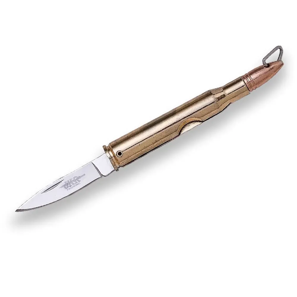 Joker Bullet JKR0671 džepni preklopni nož sa oštricom od nehrđajućeg čelika dužine 4,4 cm i aluminijskom drškom u obliku metka.
