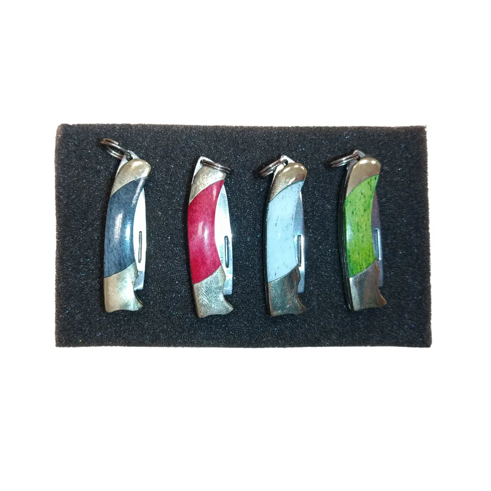 Joker JKR0195 set od četiri komada džepnih nožića u različitim bojama s mesinganim prstenovima.