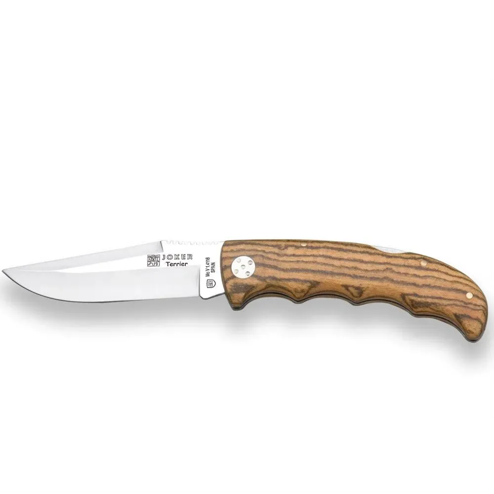 Joker Terrier NB18 lovački preklopni nož sa oštricom od nehrđajućeg čelika dužine 9 cm i drvenom drškom, namijenjen za lov, ribolov, kampiranje, preživljavanje u divljini i ostale aktivnosti na otvorenom.