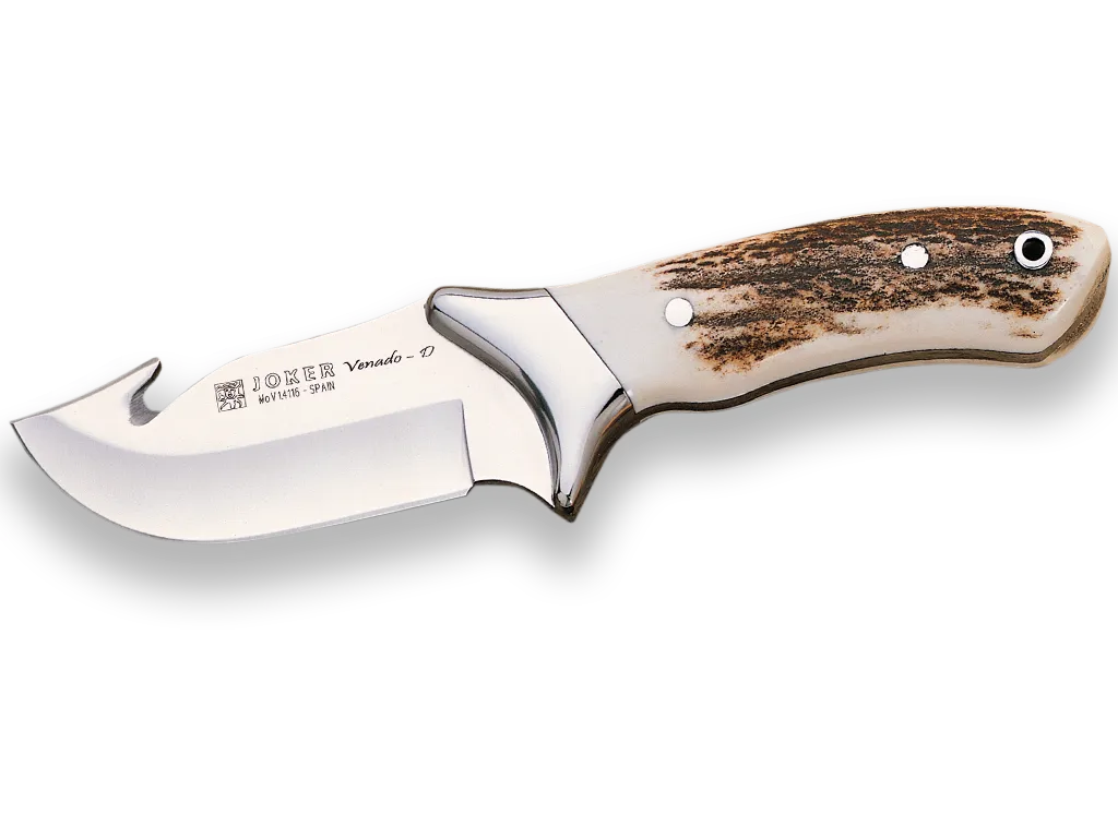 Joker Venado-D je lovački nož zbog svoje ergonomije, mjera i težine, te mogućnosti rezanja i guljenja kože, što ga čini vrlo kompletnim alatom za svakog lovca. Lovački nož Joker Venado izrađen je od full tang oštrice od nehrđajućeg čelika Mova 1.4116 dužine oštrice 10 cm, širine oštrice 3 cm i debljine 4 mm. Duljina drške je 12 cm i izrađena je od jelenskog roga. Nož Joker Venado popraćen je vrhunskim kožnom futrolom u smeđoj boji.