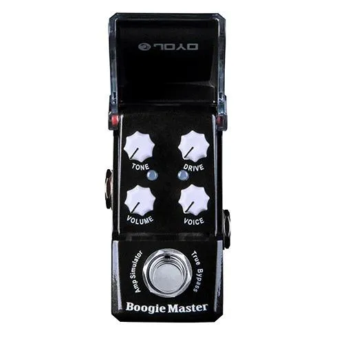 Joyo JF309 Boogie Master simulator pojačala daje moderan rock i metal zvuk, daje puni i močan zvuk, bilo da svirate na čistom zvuku ili punoj metal distorziji. Ova mala pedala će srušiti zidove. Možete ju koristiti i direktno u mikser, zvučnu karticu ili ispred pojačala. Možda je pedala mala, ali daje masivan zvuk.