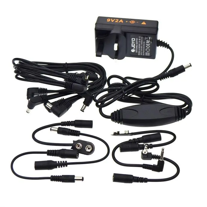 Standardni 9V Power Combo paket sastoji se od 9V DC adaptera, 8 višenamjenskih kabela, tri pretvornika pretvarača polova, pretvarača od 3.5mm, pretvarača za baterije za Line 6, Digitech, RAT, EH pedale itd.
