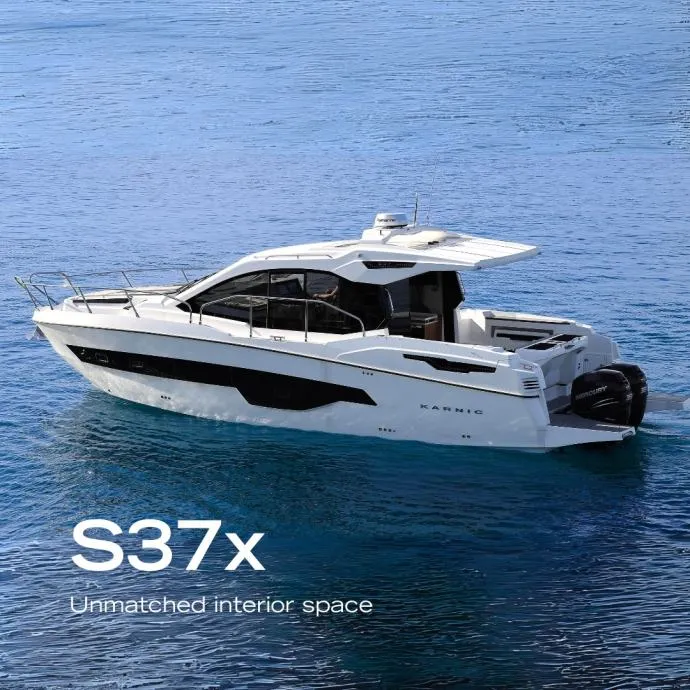Najnovije vrhunsko plovilo KARNIC S37x ima ukupno 8 ležajeva i TRI KABINE. Najnoviji dizajn, 10 godina jamstva (10 Year limited waranty) - izvrsno korito/trup plovila.