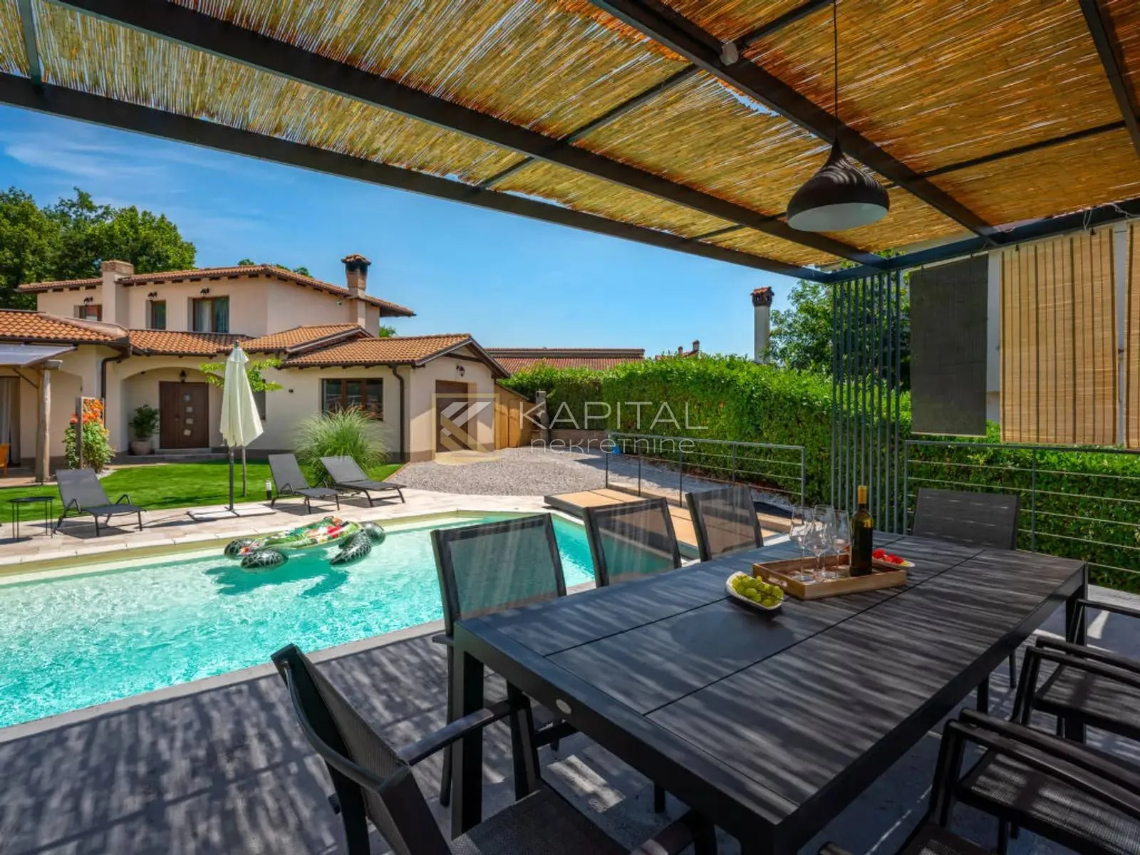 Kastav nova samostojeća kuća sveukupne površine od 283 m2 koja se sastoji od prizemlja i kata. U prizemlju je prostrani dnevni prostor (dnevni boravak, blagovaona, kuhinja, radna soba, ostava), a u produžetku garaža u kojoj se nalazi i kotlovnica za centralno grijanje na drva. Na katu se nalaze 3 spavaće sobe, kupaonica. I prizemlje i kat imaju velike terase. Do kuće je i veći natkriveni prostor, a na okućnici vanjski roštilj. Ispred kuće je predivan bazen. Kuća se nalazi na vrlo mirnoj lokaciji. Za sve informacije nazovite 091/450-5150 ID KOD AGENCIJE: 22736 Jadranka Ganić Suradnik Mob: 091/450-5150 Tel: 051/227-733 www.kapitalnekretnine.hr