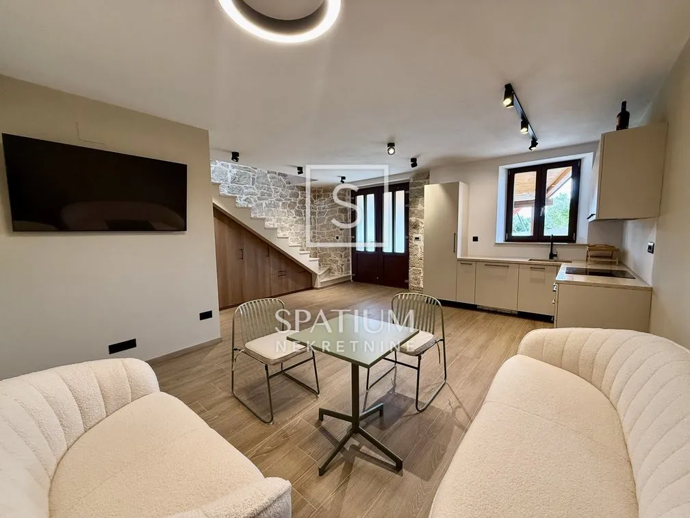 KAŠTELIR – u ponudi imamo šarmantnu autohtonu istarsku kamenu kuću s bazenom, smještenu u mirnom i privatnom okruženju. Nekretnina je kompletno renovirana u lipnju 2025. godine te se prodaje potpuno namještena i opremljena, spremna za useljenje po principu „ključ u ruke“. Kuća se prostire na tri etaže, s ukupnom neto površinom od 137,58 m2. Prizemlje čini prostrani dnevni boravak povezan s kuhinjom i blagovaonicom, uz dodatni gostinjski toalet. Na prvom i drugom katu nalaze se dvije prostrane spavaće sobe, svaka s vlastitom kupaonicom, što pruža maksimalnu privatnost i udobnost. Sve prostorije su klimatizirane, dok električno podno grijanje osigurava toplinu i ugodu tijekom zimskih mjeseci. Vanjski prostor obogaćen je bazenom s pripadajućom zonom za sunčanje te natkrivenom ljetnom kuhinjom, idealnom za opuštanje i druženja na otvorenom. S drugog kata kuće pruža se prekrasan pogled na more. U dvorištu će biti osiguran parking za dva automobila. Svi važni sadržaji – trgovine, restorani i kafići – nalaze se u neposrednoj blizini, dok su more i prve plaže udaljeni svega 8,5 km. Kaštelir je slikovito istarsko naselje smješteno na blagim brežuljcima, samo nekoliko kilometara od obale. Okruženo vinogradima i maslinicima, ovo područje nudi spektakularne poglede na netaknutu prirodu i more u daljini. Poznato je po bogatoj gastronomskoj ponudi i lokalnim manifestacijama koje promoviraju istarsku tradiciju. Blizina turističkih središta poput Poreča čini ga atraktivnom destinacijom za one koji žele mir, ali i pristup svim potrebnim sadržajima. Za sve ostale informacije obratite se s povjerenjem. Petra Juričić Agent s licencom +385 91 185 1211 petra@spatium.hr Spatium nekretnine +385 51 272 903 info@spatium.hr ID KOD AGENCIJE: 4834 Petra Juričić Agent s licencom Mob: +385 91 185 1211 Tel: +385 51 272 903 E-mail: petra@spatium.hr www.spatium.hr
