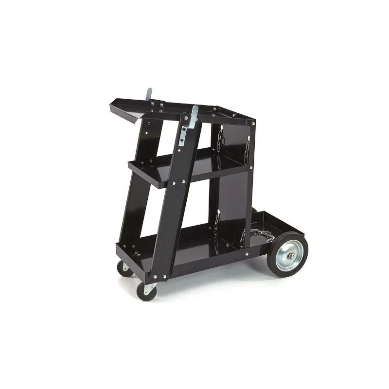 ova robusna kolica za zavarivanje imaju nagnutu gornju policu za lakši pristup tipkama, dvije police za dodatni prostor za odlaganje i dva lanca za pričvršćivanje plinske boce (Isporučuje se bez ilustriranog aparata za zavarivanje)