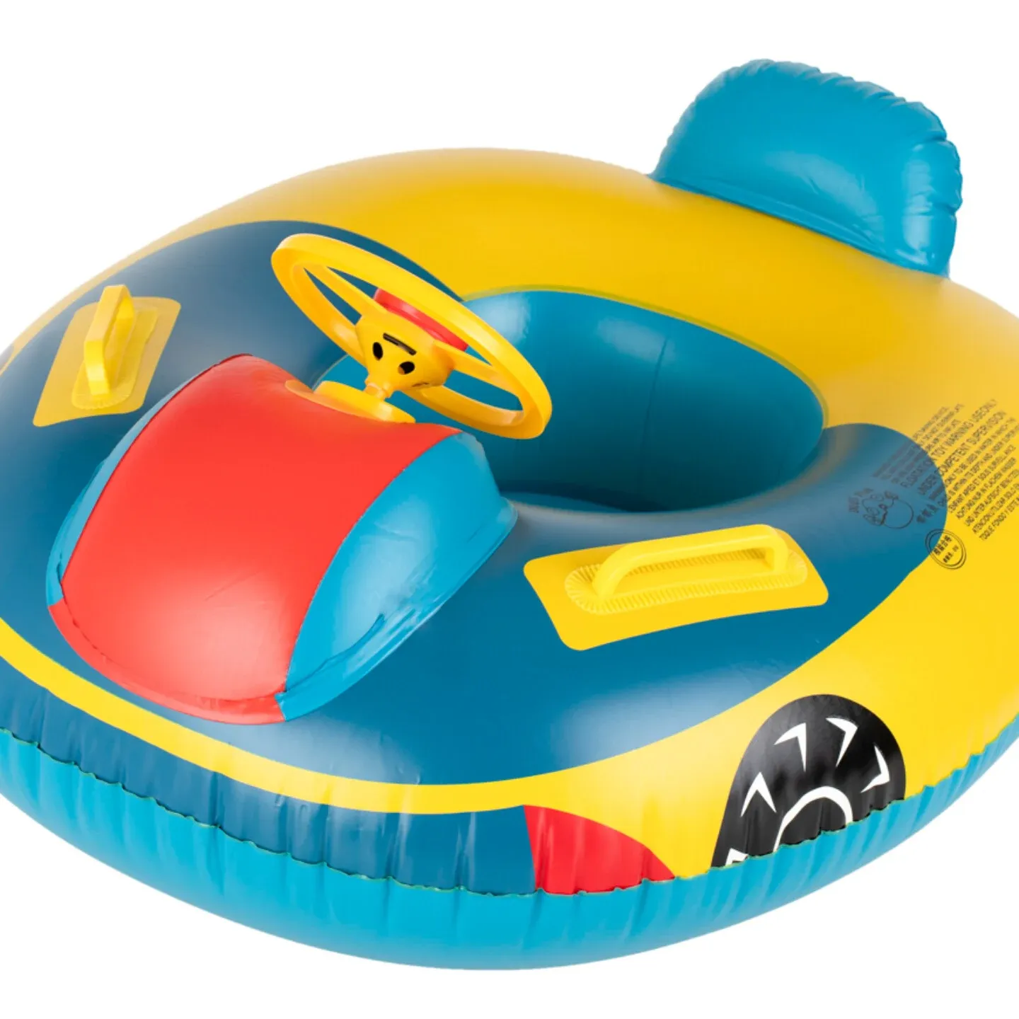 Volan koji se može okretati i ispušta zvuk pritiskom mališanima daje osjećaj kontrole i potiče kreativnost u igri. Osim toga, kolut za plivanje u obliku autića je ukrašen uzorcima koji podsjećaju na prave kotače, retrovizore i prednju haubu vozila, a žive boje poput plave, žute, crvene i crne osiguravaju da će dijete biti uočljivo i pod nadzorom u svakom trenutku.