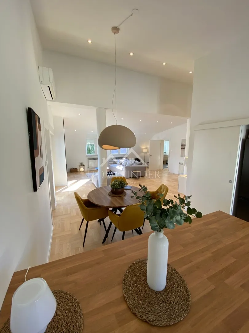 Iznajmljuje se trosoban stan – Šalata U mirnom i prestižnom dijelu Šalate iznajmljuje se potpuno namješten i renoviran trosoban stan smješten na drugom katu manje urbane vile s ukupno tri stambene jedinice. Nekretnina je temeljito obnovljena 2026. godine te pruža visoku razinu komfora, privatnosti i reprezentativnosti. Stan se odlikuje prostranim open space dnevnim prostorom s kuhinjom i blagovaonicom, koji zahvaljujući velikim otvorima i povoljnoj orijentaciji obiluje prirodnim svjetlom. Iz dnevnog boravka izlazi se na balkon, a dodatni balkon ima i jedna spavaća soba. Interijer je moderno uređen, svijetao i prozračan, s naglaskom na udobnost i funkcionalnost. Raspored obuhvaća dvije spavaće sobe, garderobu i dvije kupaonice, čime je prostor idealno prilagođen obiteljskom životu ili poslovnim korisnicima koji traže dodatnu razinu komfora. Stan je u potpunosti opremljen – uključujući posteljinu, posuđe i sav potreban pribor – te je spreman za useljenje bez dodatnih ulaganja. Kamin u dnevnom boravku dodatno doprinosi ugodnoj atmosferi. Tehničke i dodatne značajke: • Površina: 149 m² • 2. kat, zgrada bez lifta • Dva balkona (po 12 m²) • Električne rolete • Halogena rasvjeta • Natkriveno parkirno mjesto u dvorištu • Mogućnost besplatnog parkiranja na ulici • Blizina autobusnih linija prema Kvaternikovom trgu i Kaptolu Stan je idealan za poslovne osobe, diplomatsko osoblje, parove ili obitelj koja traži kvalitetan, miran i funkcionalan životni prostor na jednoj od najpoželjnijih zagrebačkih lokacija. Za dodatne informacije ili dogovor termina razgledavanja, slobodno se javite. ID KOD AGENCIJE: 856 Borna Rezo Suradnik u procesu obuke Mob: 099 783 5832 E-mail: b.rezo@homefinder.hr www.homefinder.hr