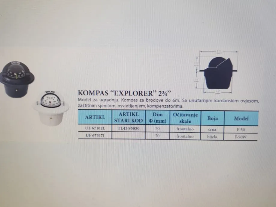 Kompas "Explorer " 2 3/4" , model za ugradnju , crne boje , za brodove do 6 m.