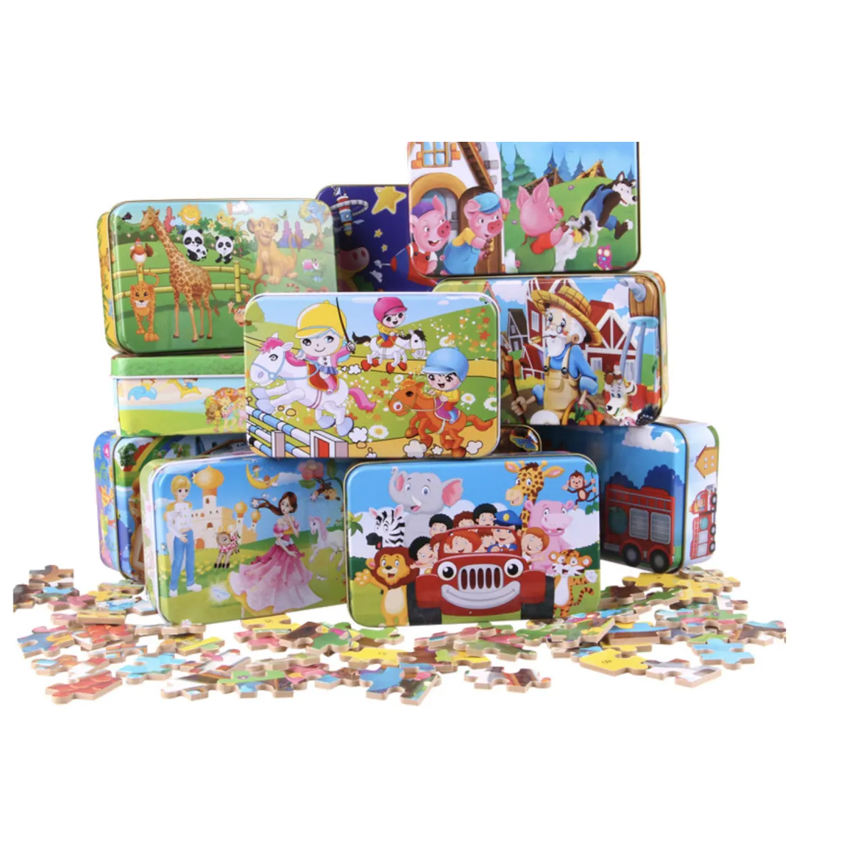 Igračka Drvene Puzzle u metalnoj kutiji, 60 komada