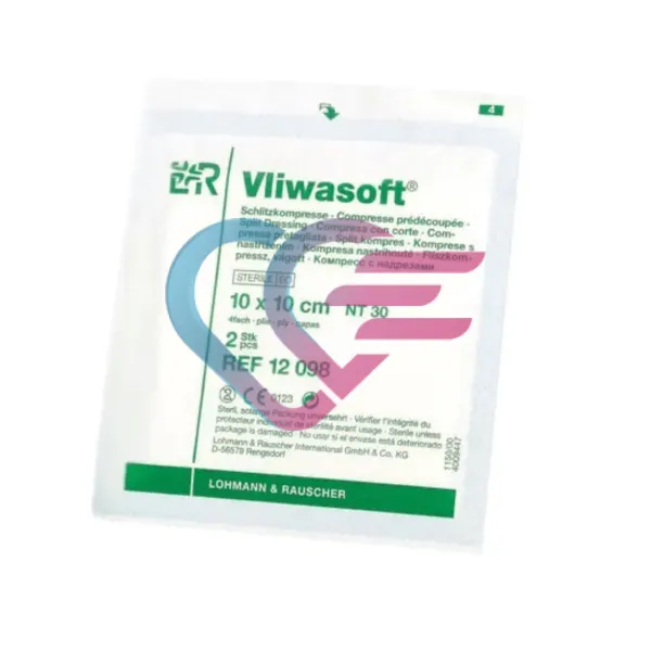 Sterilna, mekana kompresa s prorezom u obliku slova Y.