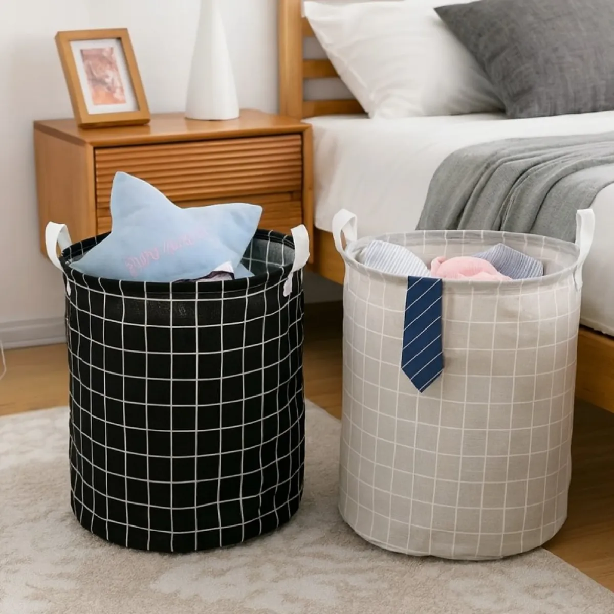 Praktična i moderna košara za prljavo rublje izrađena od kombinacije pamuka i lana, s unutarnjim slojem otpornim na vlagu. Lako sklopiva, lagana i prostrana, idealna je za odlaganje odjeće, igračaka ili drugih sitnica u kućanstvu. Dostupna u tri elegantne boje – bijela, siva i crna – koje se uklapaju u svaki interijer.