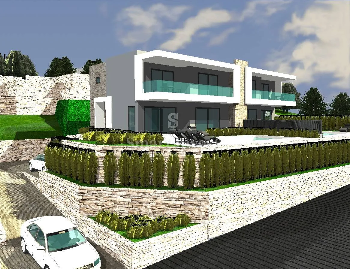 KOSTRENA, Na prodaju su dvije dvojne vile s pogledom na more i bazenima u izgradnji, na odličnoj mirnoj lokaciji s otvorenim pogledom na more. Objekt ukupne površine 491.93 m2 smješten je na zemljištu površine 908 m2 te u naravi se sastoji od dvije dvojne vile. Svaka vila se sastoji od suterena (garaža), prizemlja i kata, te ima 4 spavaće sobe, 3 kupaonice. U prizemlju se nalazi ulazni trijem i stubište, hall, kupaonica, radna/gostinjska soba, dnevni boravak s kuhinjom i blagovaonicom te izlazom na natkrivenu terasu. Na katu se nalazi hodnik, master spavaća soba s vlastitom kupaonicom i walk-in garderobom, još dvije spavaće sobe s zajedničkom kupaonicom, te natkriveni balkon. Gradnja je započeta, do 01.07. prije zabrane radova će biti gotova prva etaža, u 9. mjesecu se nastavlja gradnja. Gradi pozdani investitor koji je ujedno i izvođač radova s uhodanim poslom preko 40 godina u građevini. Predviđeni rok završetka na ljeto 2024. godine. Na okućnici svake vile će biti smješten bazen, zelene površine te parking. Postoji mogućnost kupnje svake vile zasebno. Lijepa i mirna lokacija uz sporednu cestu s malim prometom, s otvorenim pogledom na more, u susjedstvu su nove kuće. Od mora mora i predivnih plaža se stiže za svega par minuta autom. Za više informacija i razgled nazovite +385/99/320-0008 ID KOD AGENCIJE: 14147 Agencija Opatija Ovlašteni posrednik Mob: +385/99/320-0008 E-mail: office@smart-invest.hr www.smart-invest.hr
